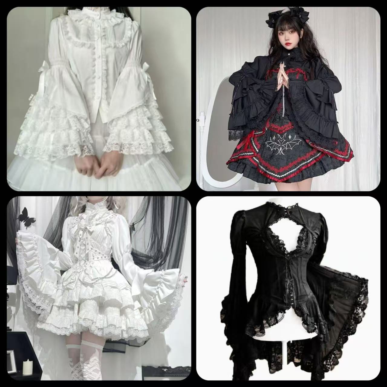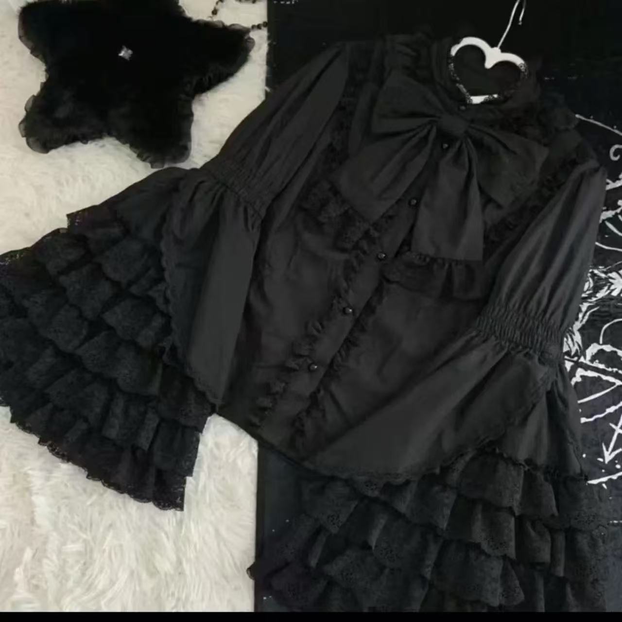 【ゴシックパレススタイル】繊細なレースが贅沢にあしらわれたロリータスリーブシャツ。ボリュームのある袖とクラシカルなシルエットが、宮廷風の優雅さを演出します。ジャケットやコルセットとの相性も抜群で、華やかなゴシックコーデにぴったりの一着です。