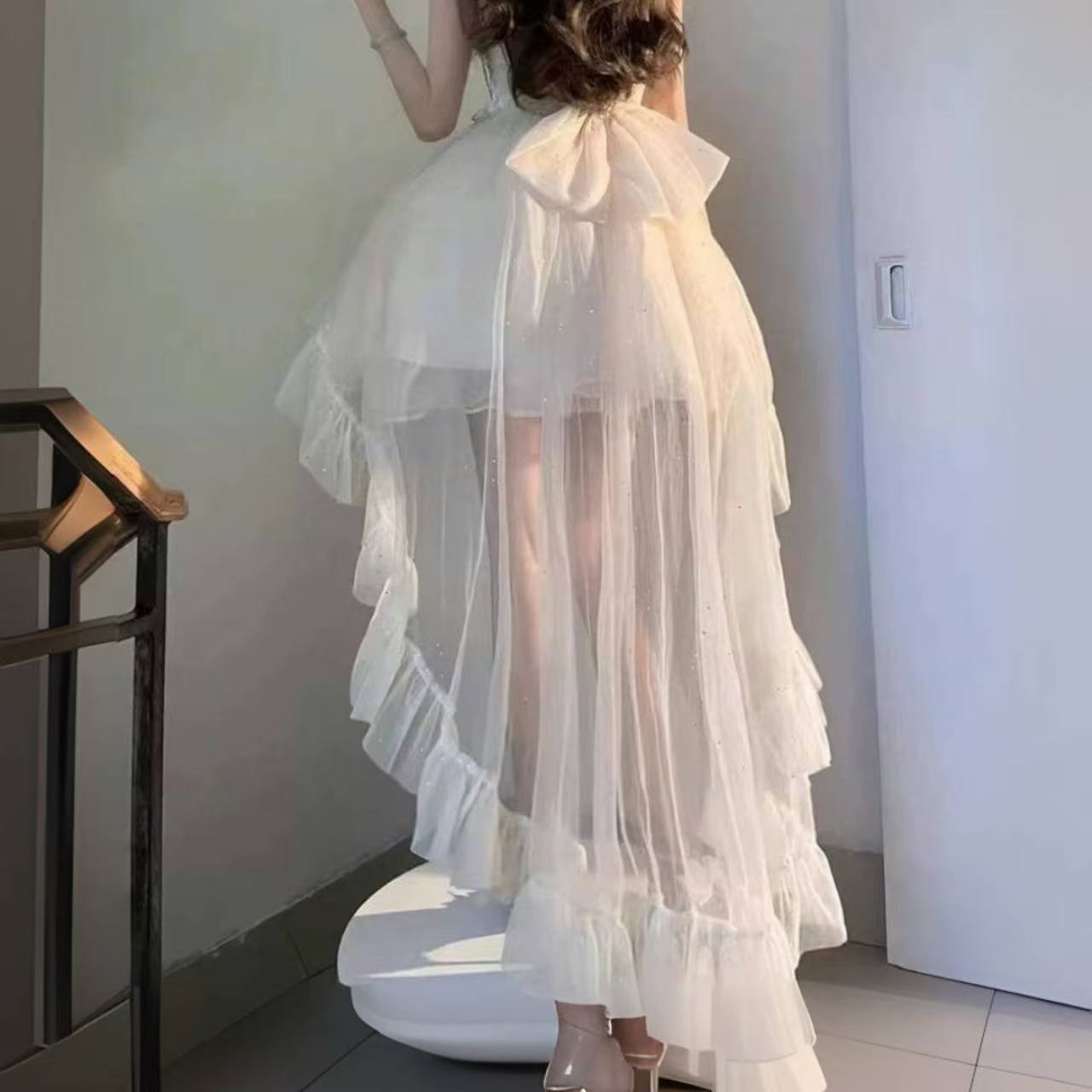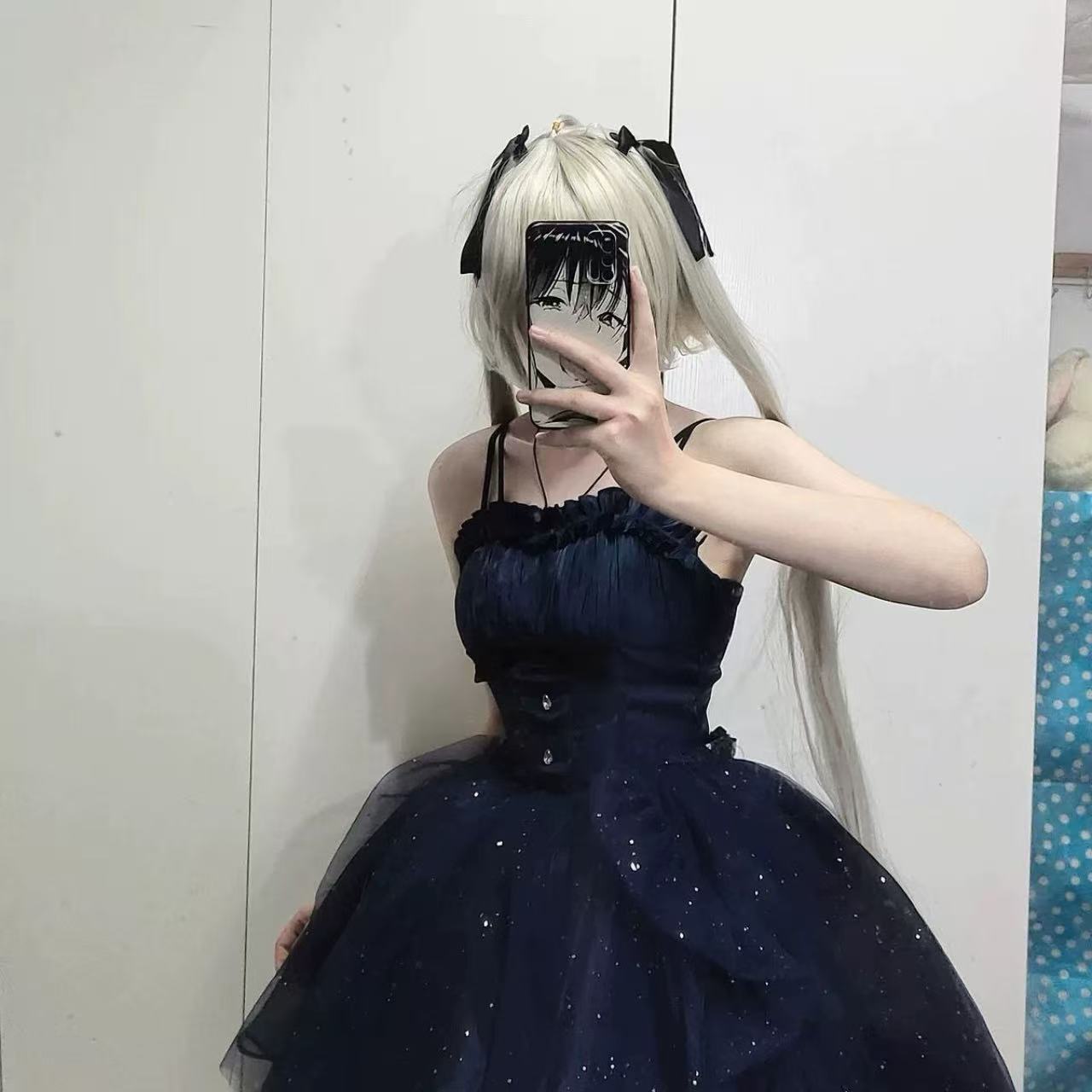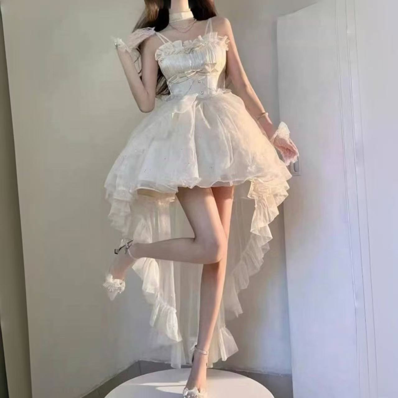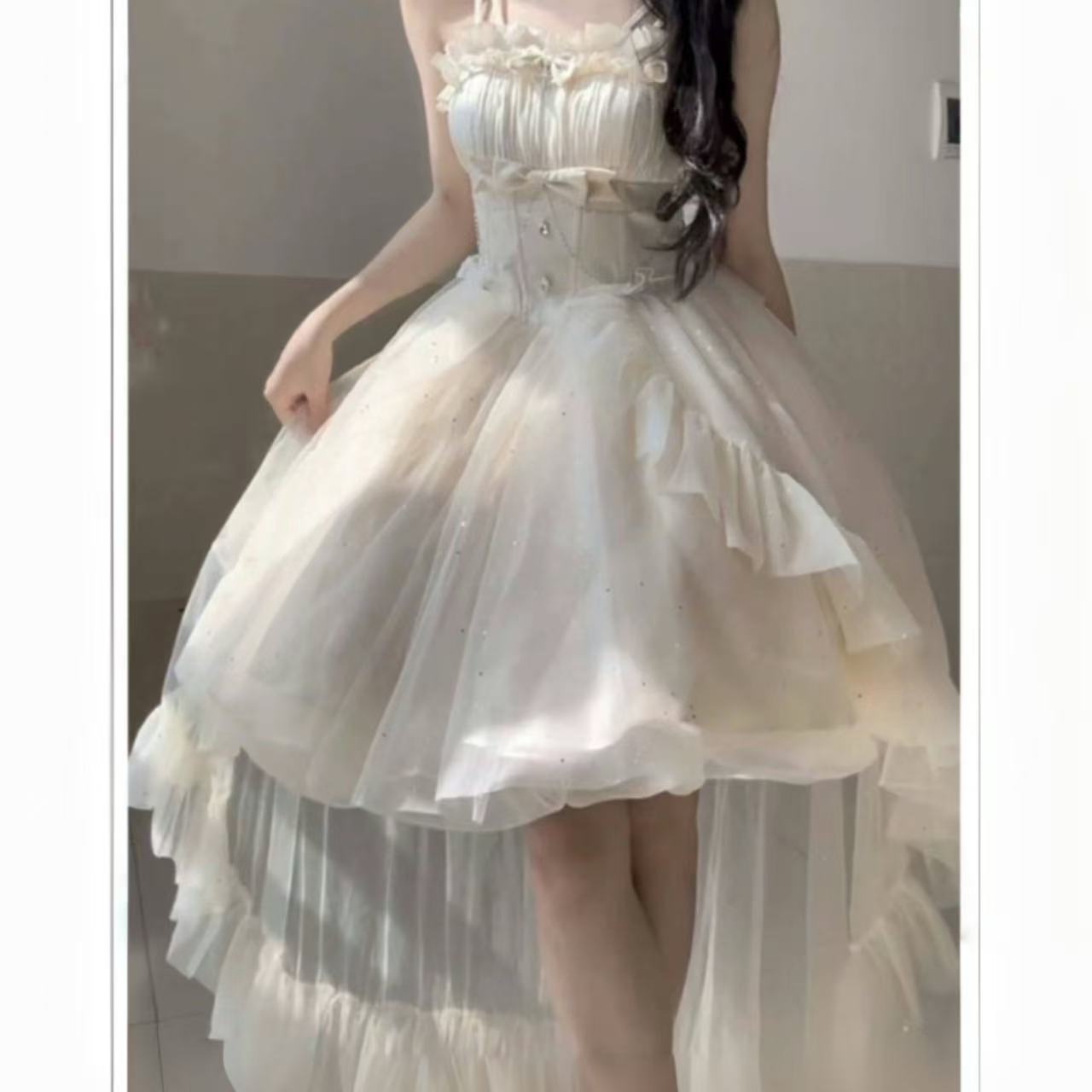 【ティーブレイク フレンチロリータプリンセスドレス】ふんわり広がるパフィースカートと繊細なレースが魅力の特別な一着。お誕生日や撮影会、ティーパーティーにぴったり。柔らかい素材で快適な着心地と上品な可愛さを演出します。