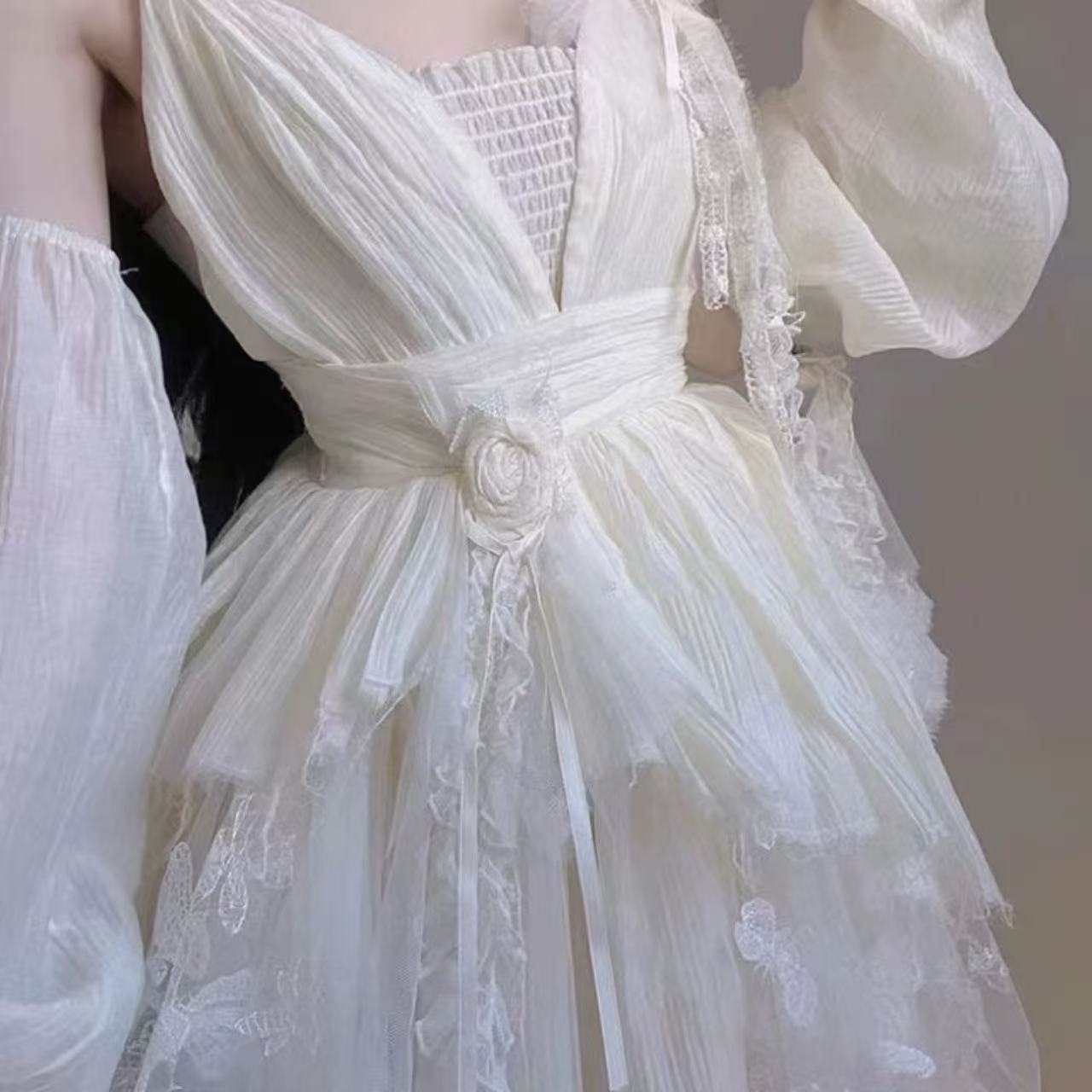 【ロリータ】ランナウェイプリンセスのような優雅さを纏う、フレンチベージュのフェアリードレス。バタフライモチーフとシャネル風デザインが上品で、ヴィンテージ感漂うティーブレイクスタイル。軽やかなスカートが動くたびにふんわり揺れ、夢のような気分にさせてくれます。