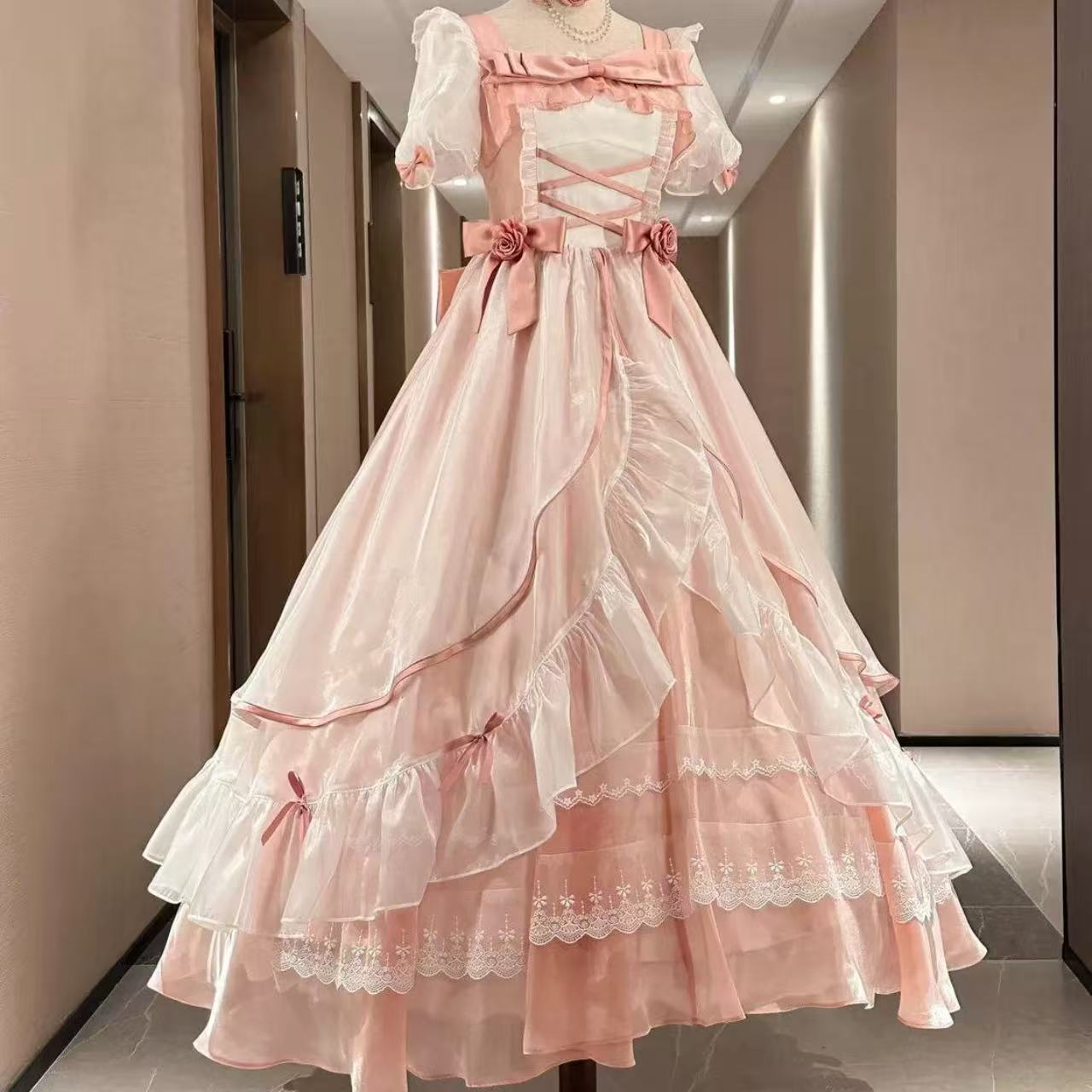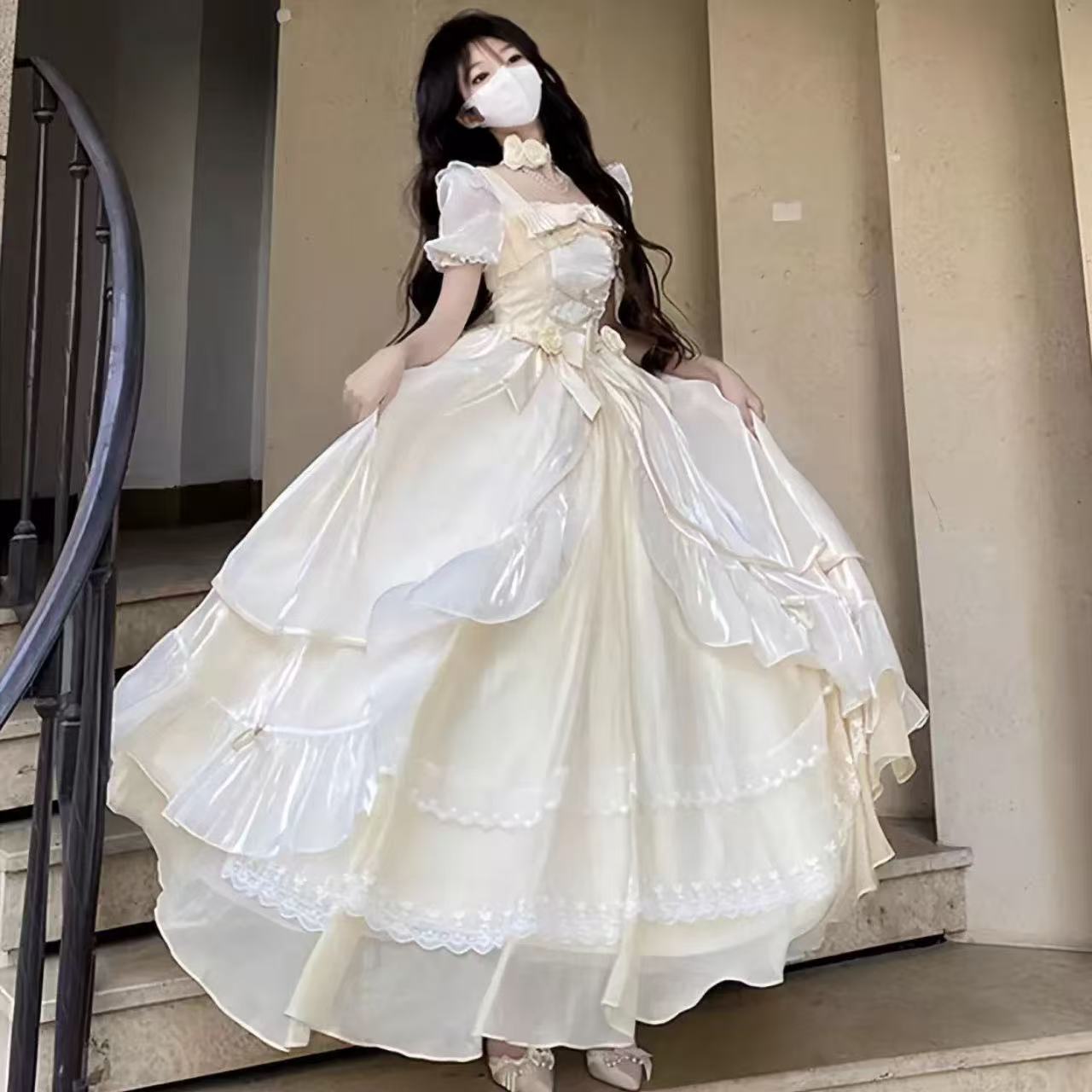 【ロリータ】フライトダイアリープリンセスドレス。ふんわりと広がるビッグスカートが魅力の華やかな一着。夢見るようなデザインで、ハロウィンやパーティーにもぴったり。エレガントな雰囲気をまとい、まるでおとぎ話のプリンセスのように輝けるロリータドレスです。
