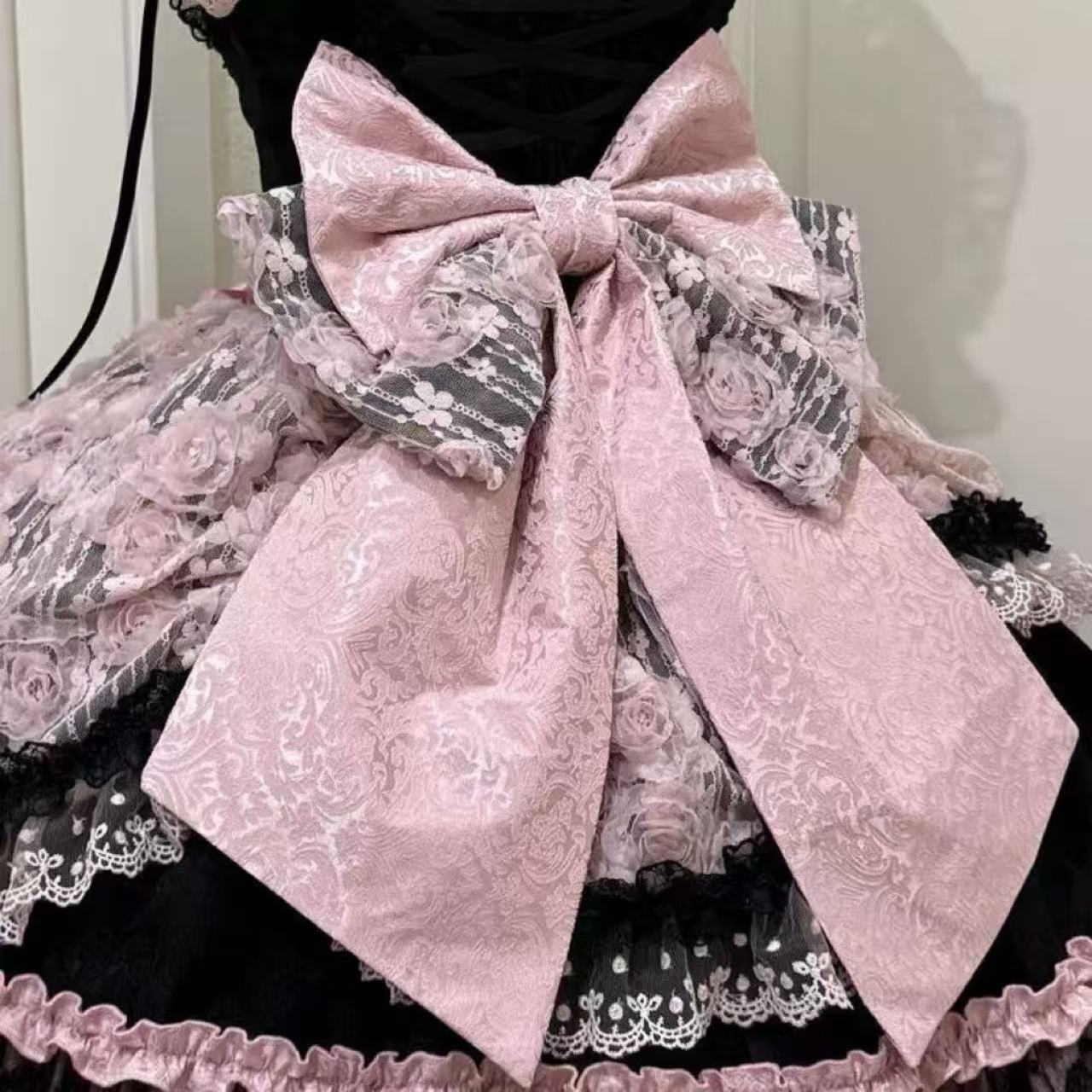 【ロリータ】ローズプリンセス×ホワイトシュガーガールのオリジナルデザイン。ダークな魅力と甘さを兼ね備えた夏のJSKサスペンダードレスです。バラのモチーフが上品で、クラシカルロリータの雰囲気を演出。特別な日のコーデにもぴったり。