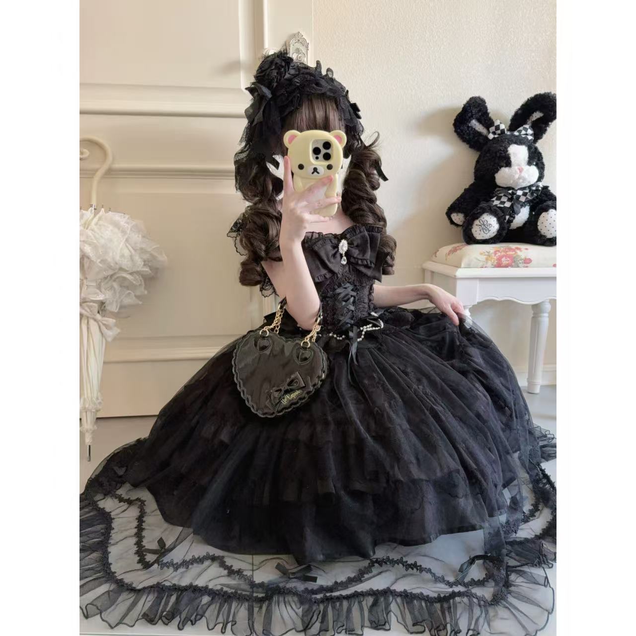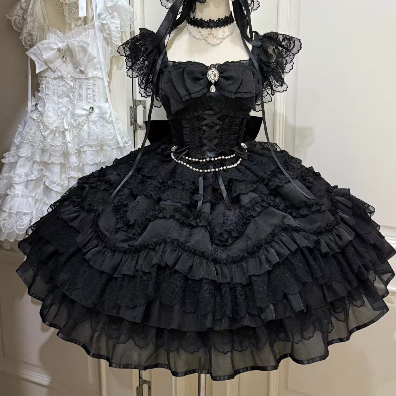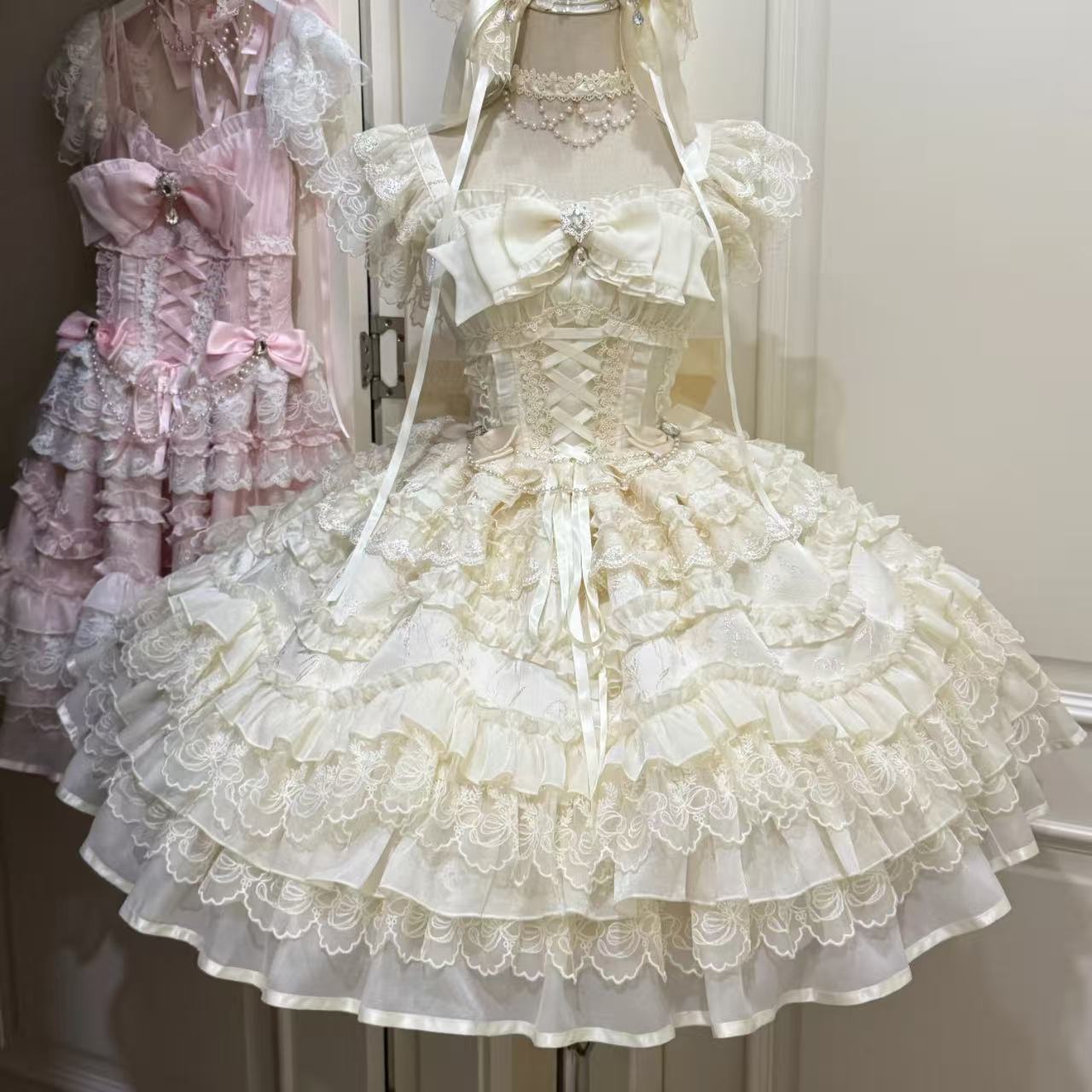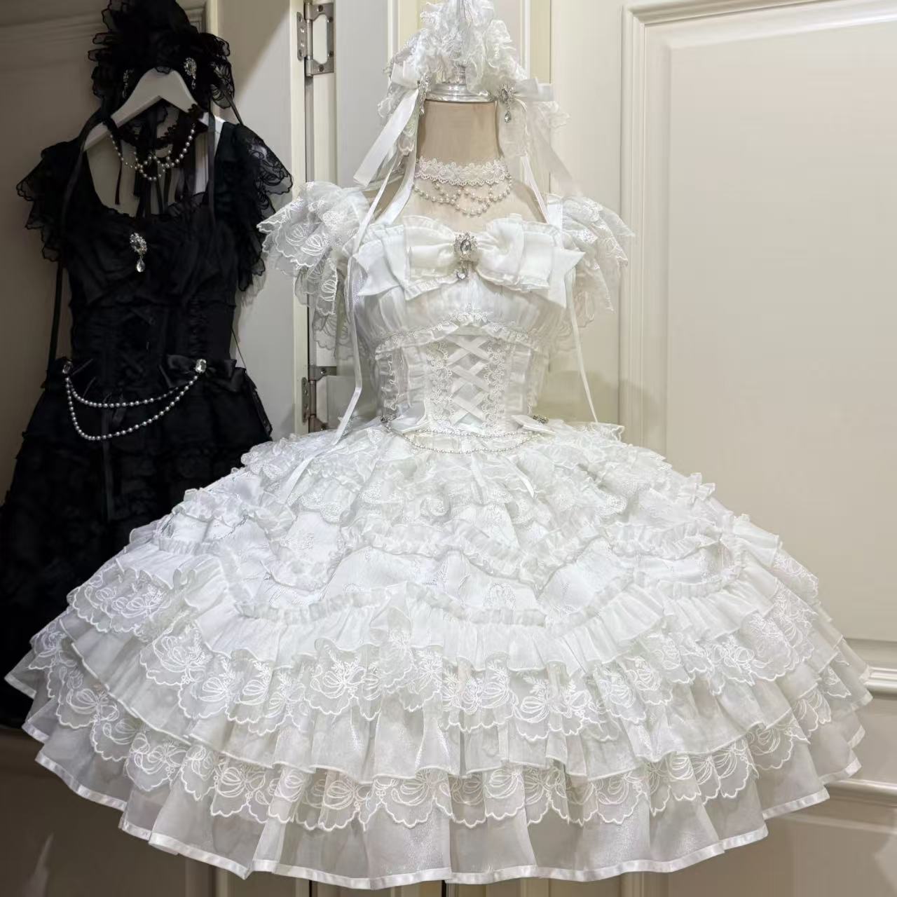 「永遠の誓い」ホワイトシュガーガールのオリジナルデザイン【ロリータドレス】。柔らかな色合いと繊細なレースが特徴のJSKサスペンダースカートです。清楚で優雅な雰囲気を演出し、誕生日や特別な日のコーデにぴったりな一着です。