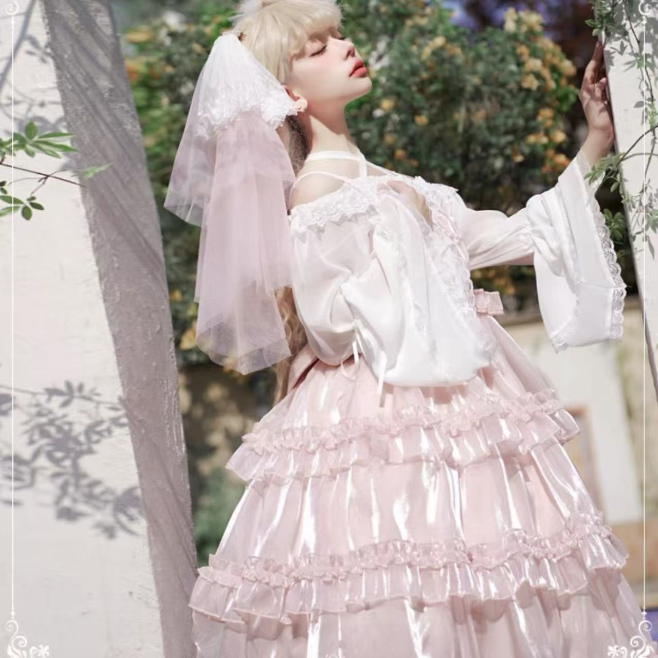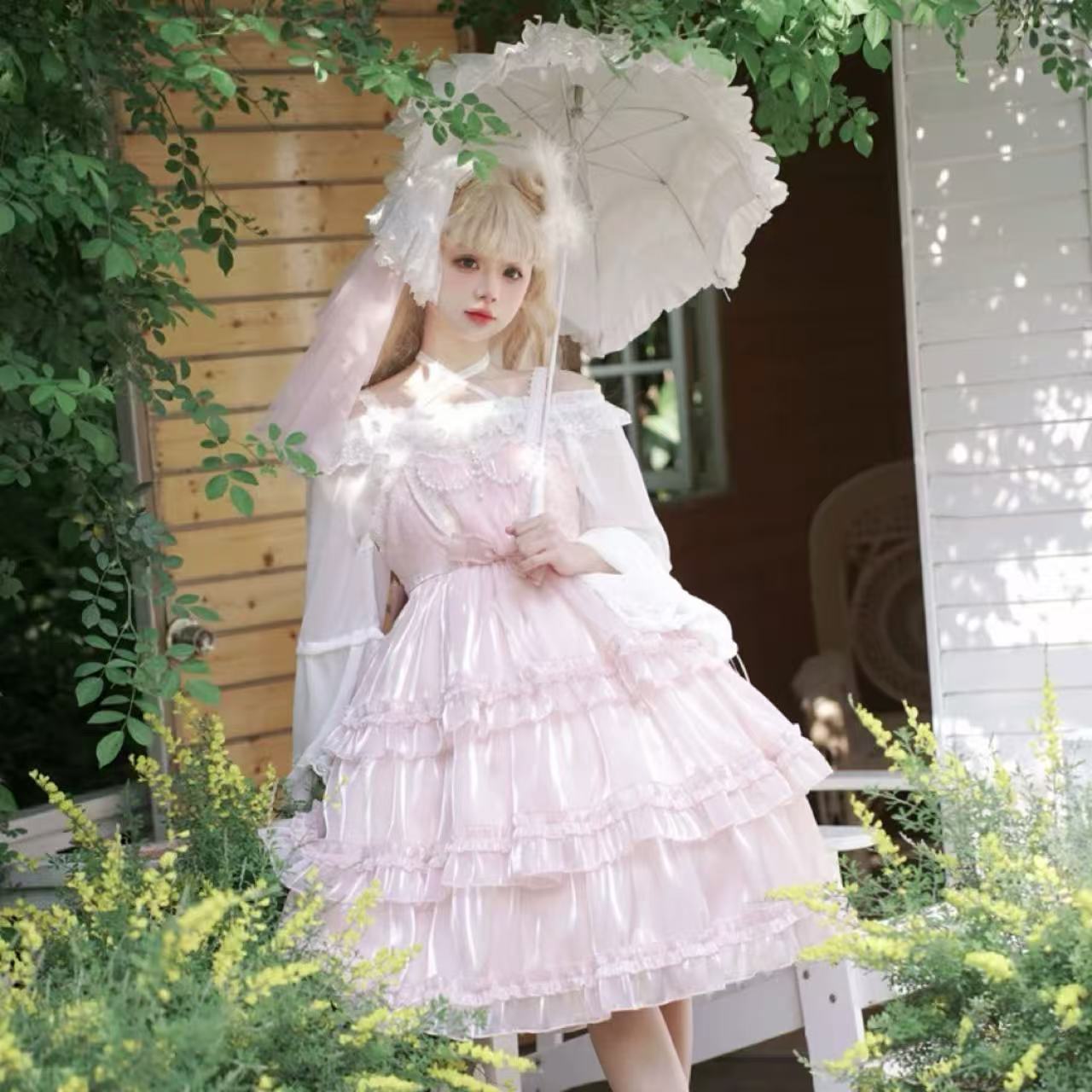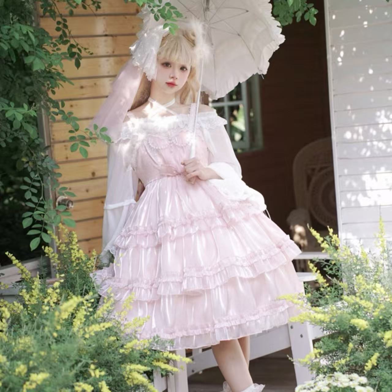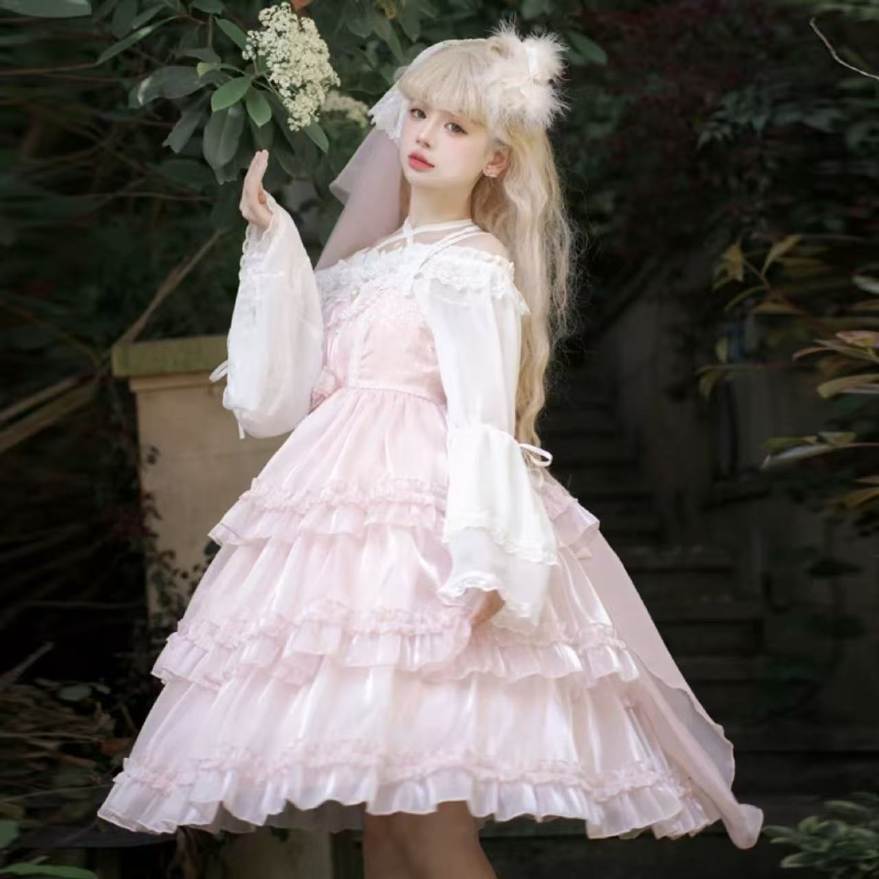 3段のフリルが華やかに揺れる、可憐で煌びやかな甘ロリータジャンパースカート。 ふんわりと広がるシルエットがまるでお菓子のように甘く、乙女心をくすぐります。 豊富なカラーバリエーションから、自分だけの“とっておきの一着”を選べるのも魅力。 お茶会やお出かけコーデにもぴったりな、ロマンチックな雰囲気あふれるアイテムです。