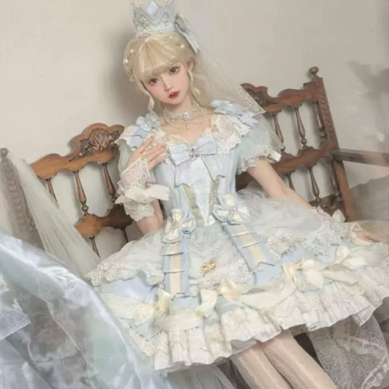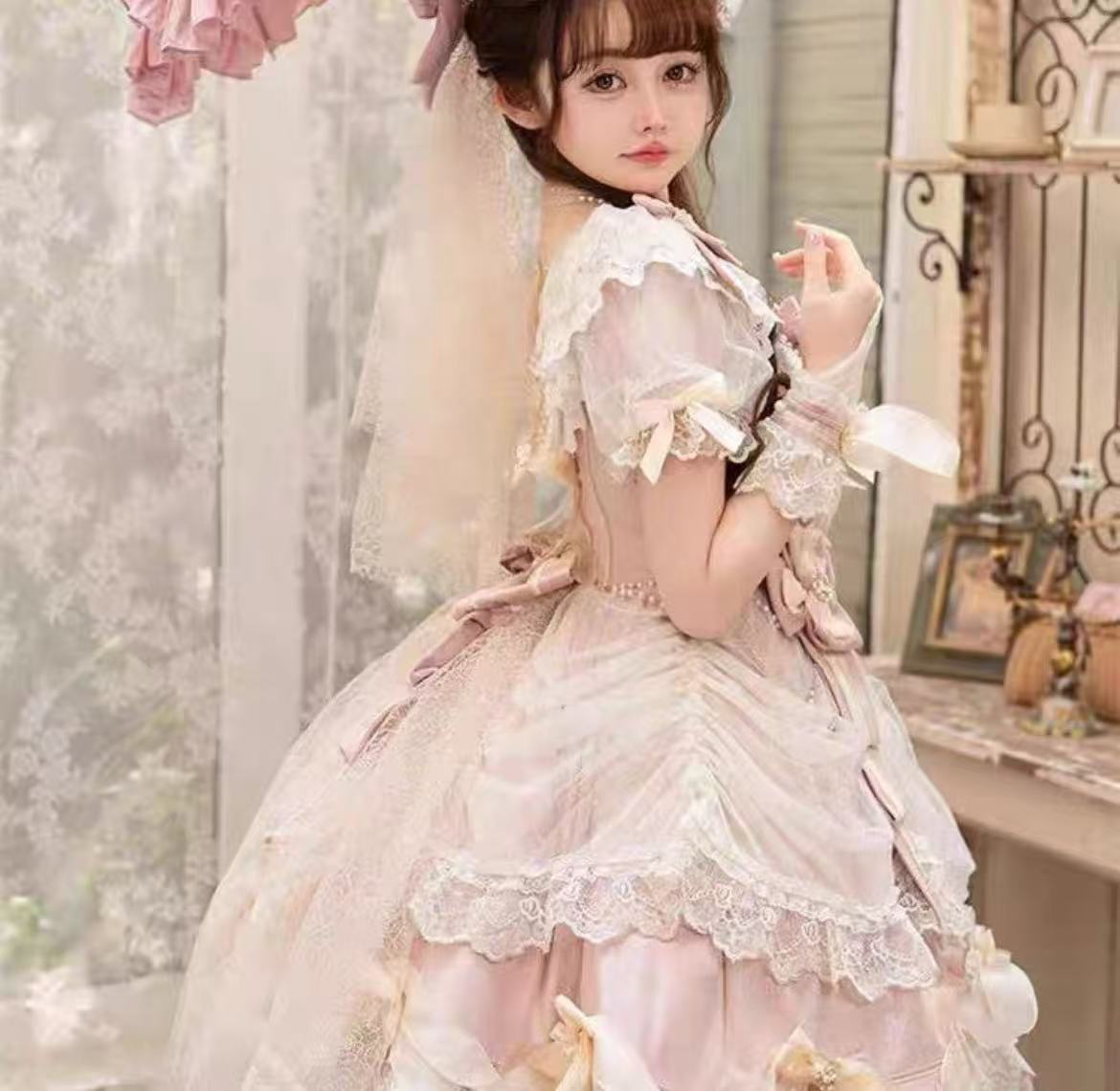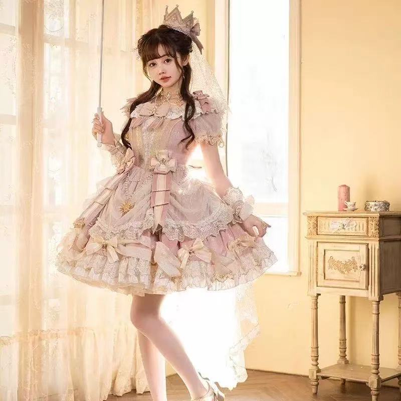 まるで絵本の世界から抜け出したような、夢のひとときを叶える「甘ロリータ 星空の舞踏会ドレス ~姫様の優雅な午後~」。繊細なレースやきらめくビジューが星空のように輝き、動くたびに光を受けて華やかにきらめきます。クラシカルでありながらロマンチックなデザインは、身にまとうだけで気品と可憐さを引き立て、まるで本物の姫様のような優雅な気分を演出してくれる特別なロリータドレスです。