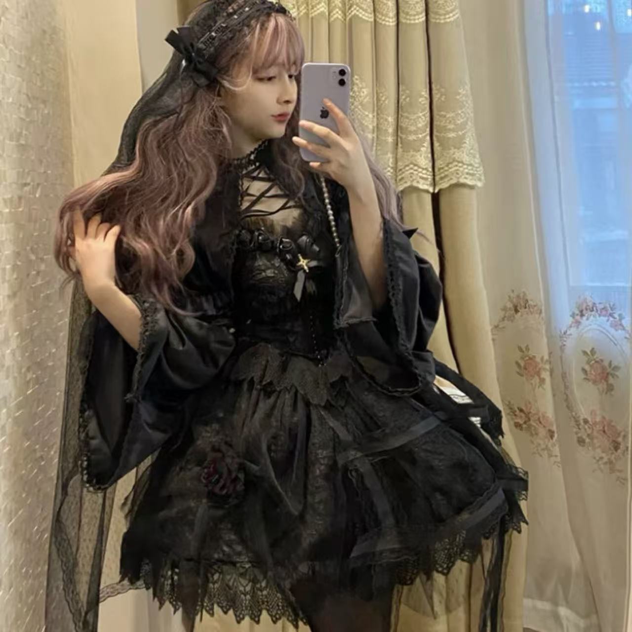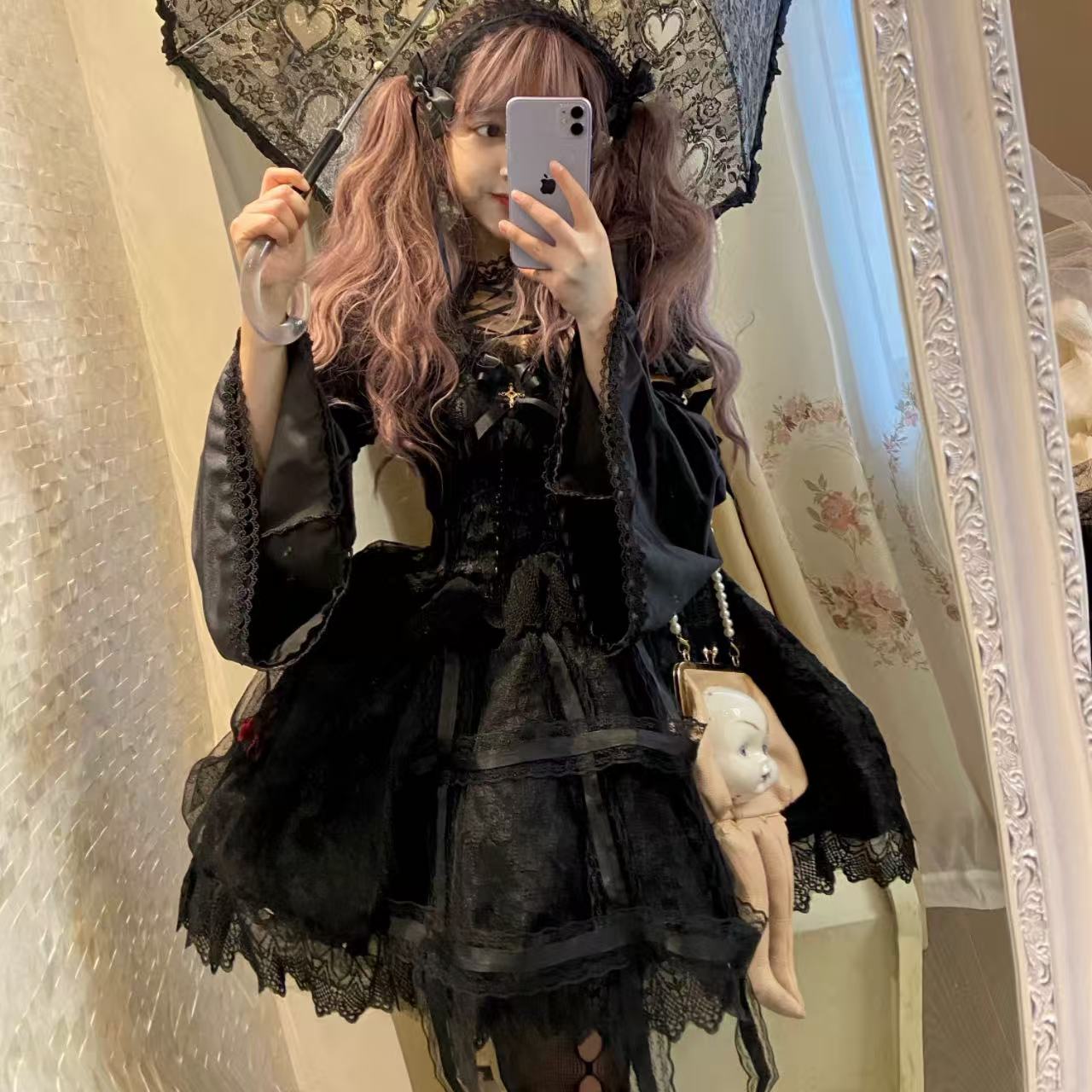 ゴスロリ 宮廷風レース重ね姫袖ワンピース