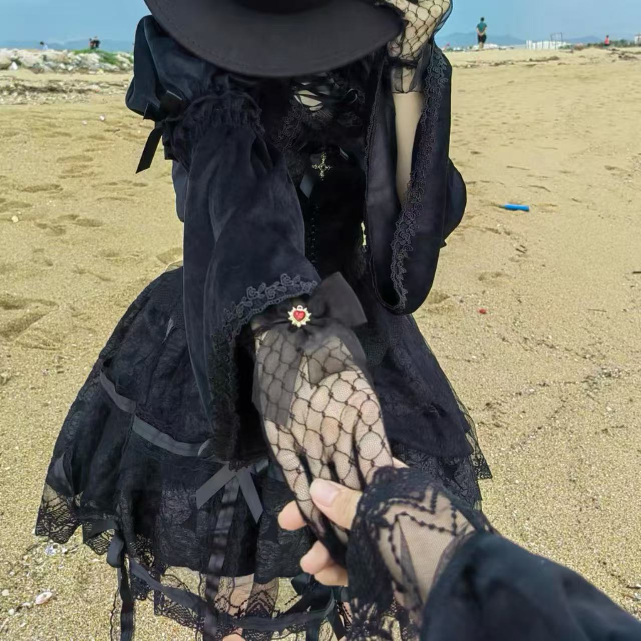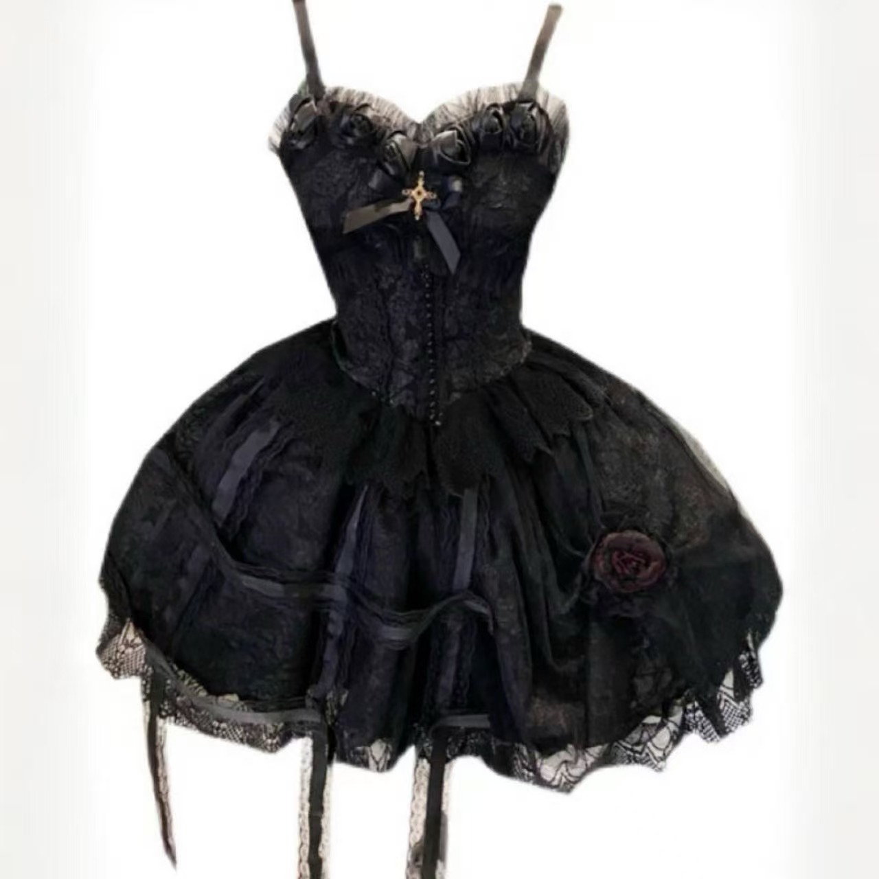 ゴシックとロリータ、ふたつの美学を融合させた優雅で魅惑的なドレス。漆黒のカラーが生み出す深みのある雰囲気が、甘さの中に厳かさを感じさせる洗練された一着です。繊細なレースとクラシカルなシルエットが調和し、華やかでありながらどこかミステリアス。存在感のあるデザインは、上品さと妖艶さを併せ持つゴシックロリータスタイルを楽しみたい方にぴったりのワンピースです。