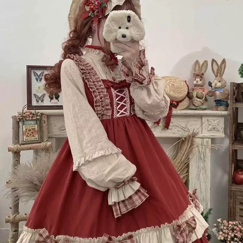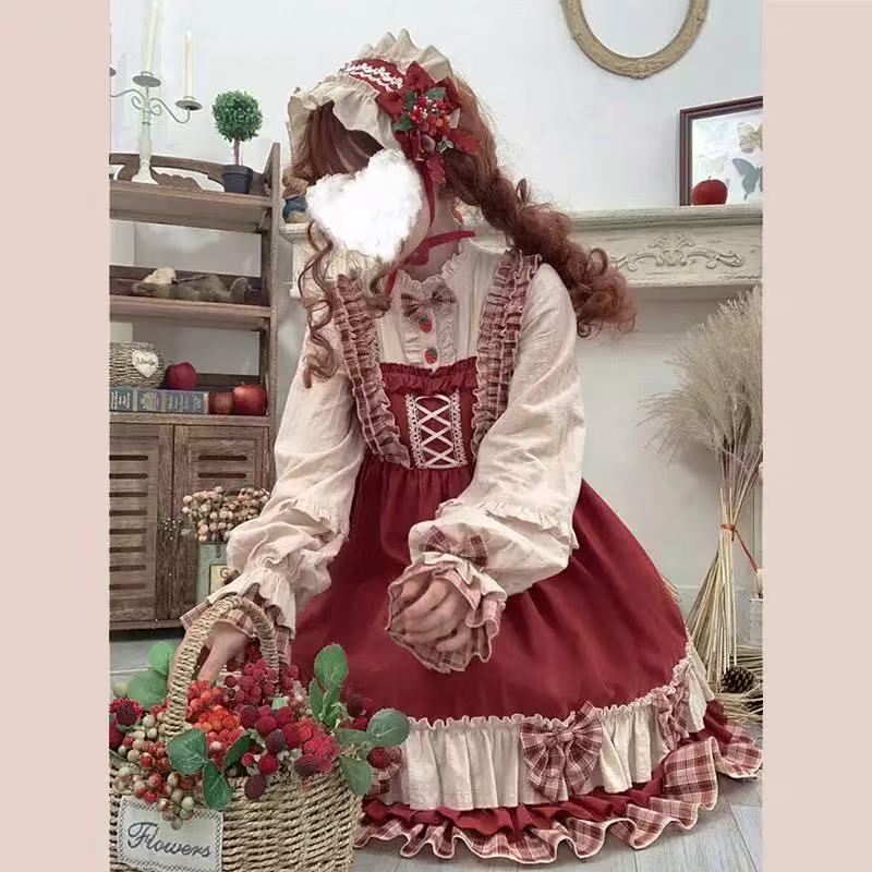 レトロな赤いチェック柄が魅力のロリータワンピース。胸元に並んだ2つのいちごモチーフが愛らしく、白×赤×チェックのコントラストが目を引くデザインです。三段フリルのスカートはふんわりと広がり、ガーリーな雰囲気を演出。どこか懐かしくも上品なスタイルで、クラシカルロリータの魅力を存分に感じられる一着です。お出かけやお茶会など、特別な日にもぴったり。