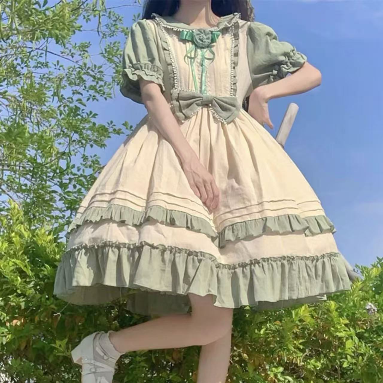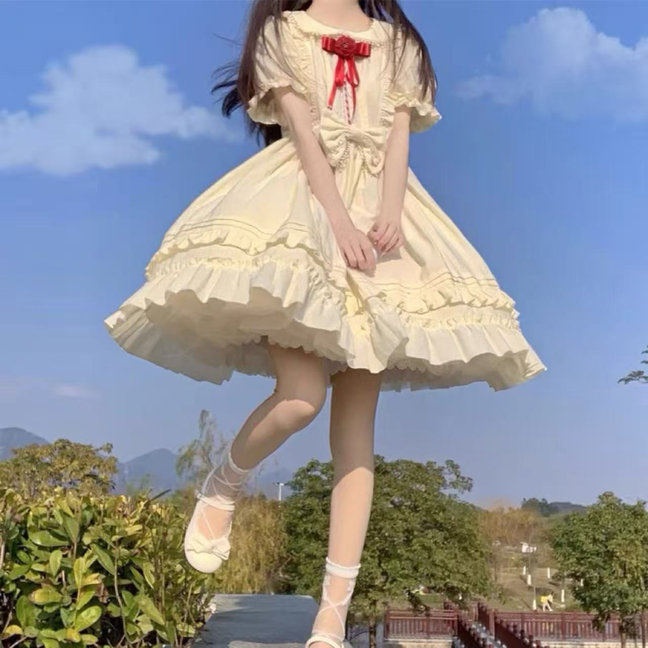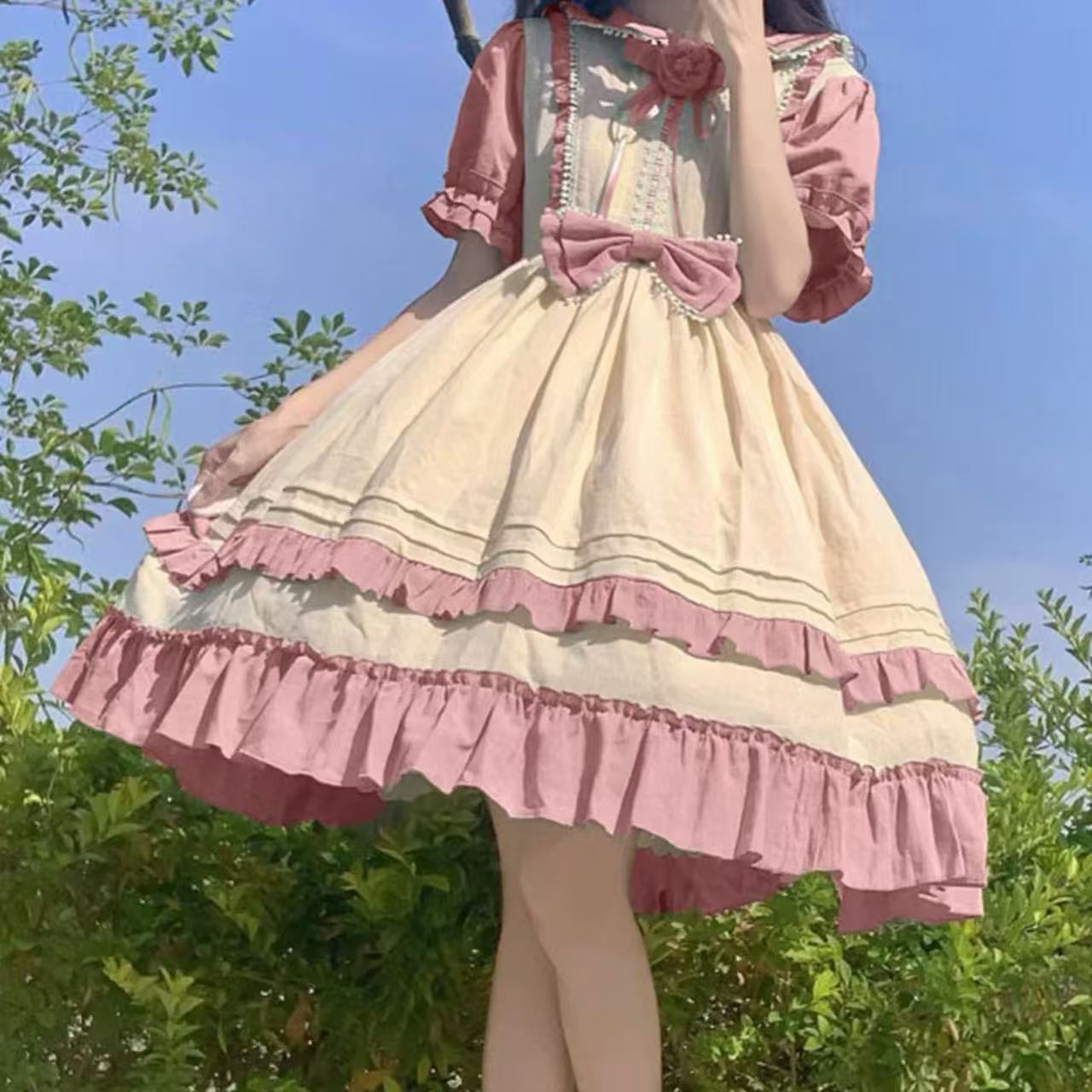 胸元にあしらわれたローズリボンが華やかに輝く、気品あふれるクラシカルロリータです。 繊細なディテールが上品さを引き立て、学生風の柔らかい雰囲気をプラス。 さらっと一枚で着られる軽やかさと、動きやすさを両立したデザインで、お出かけやデートにもぴったりの一着です♩