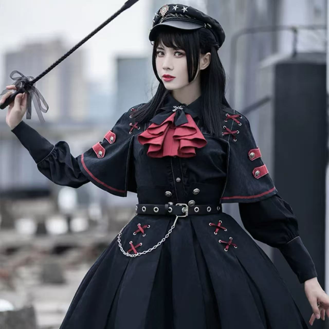 軍服ロリータ 赤リボン×チェーンポリス制服ワンピース