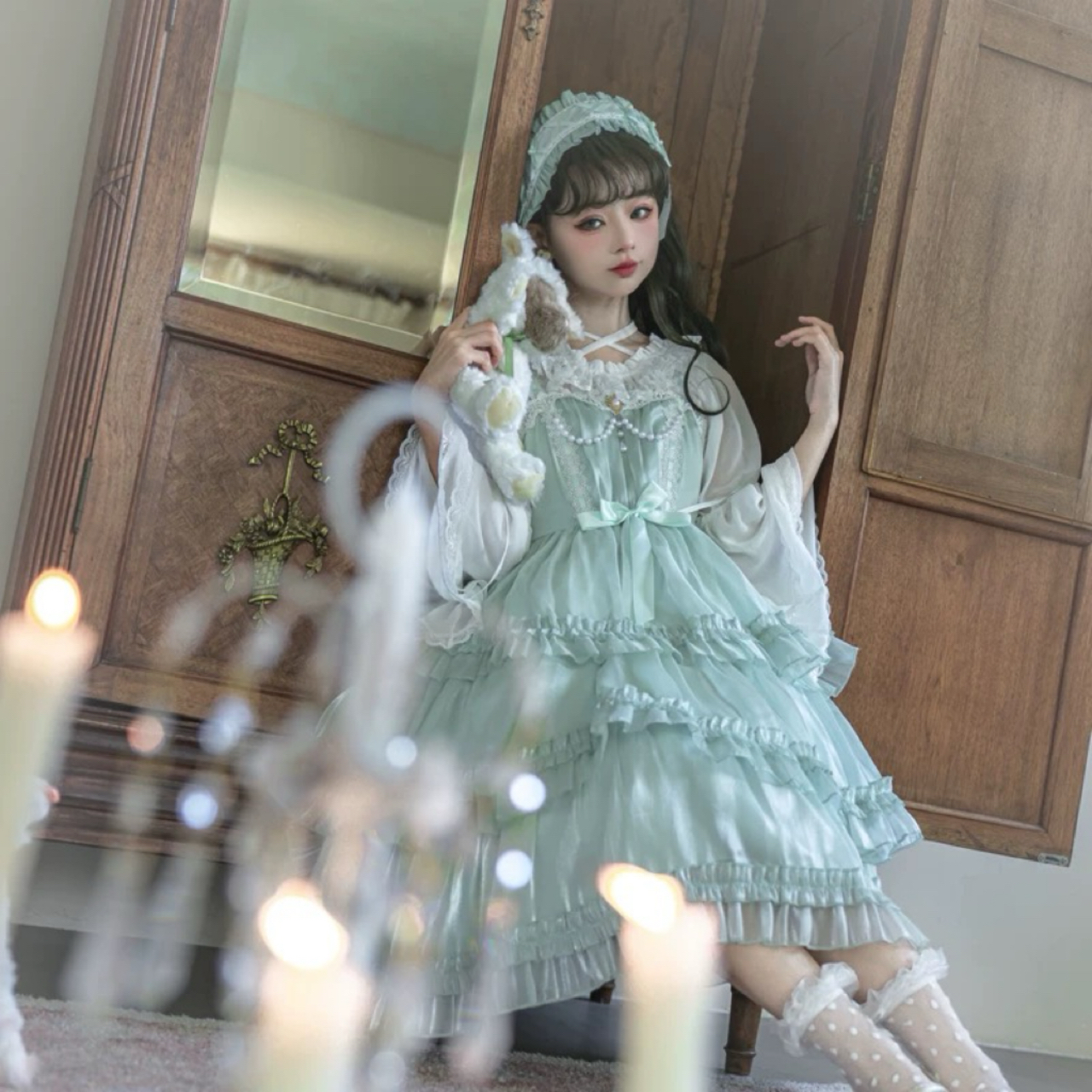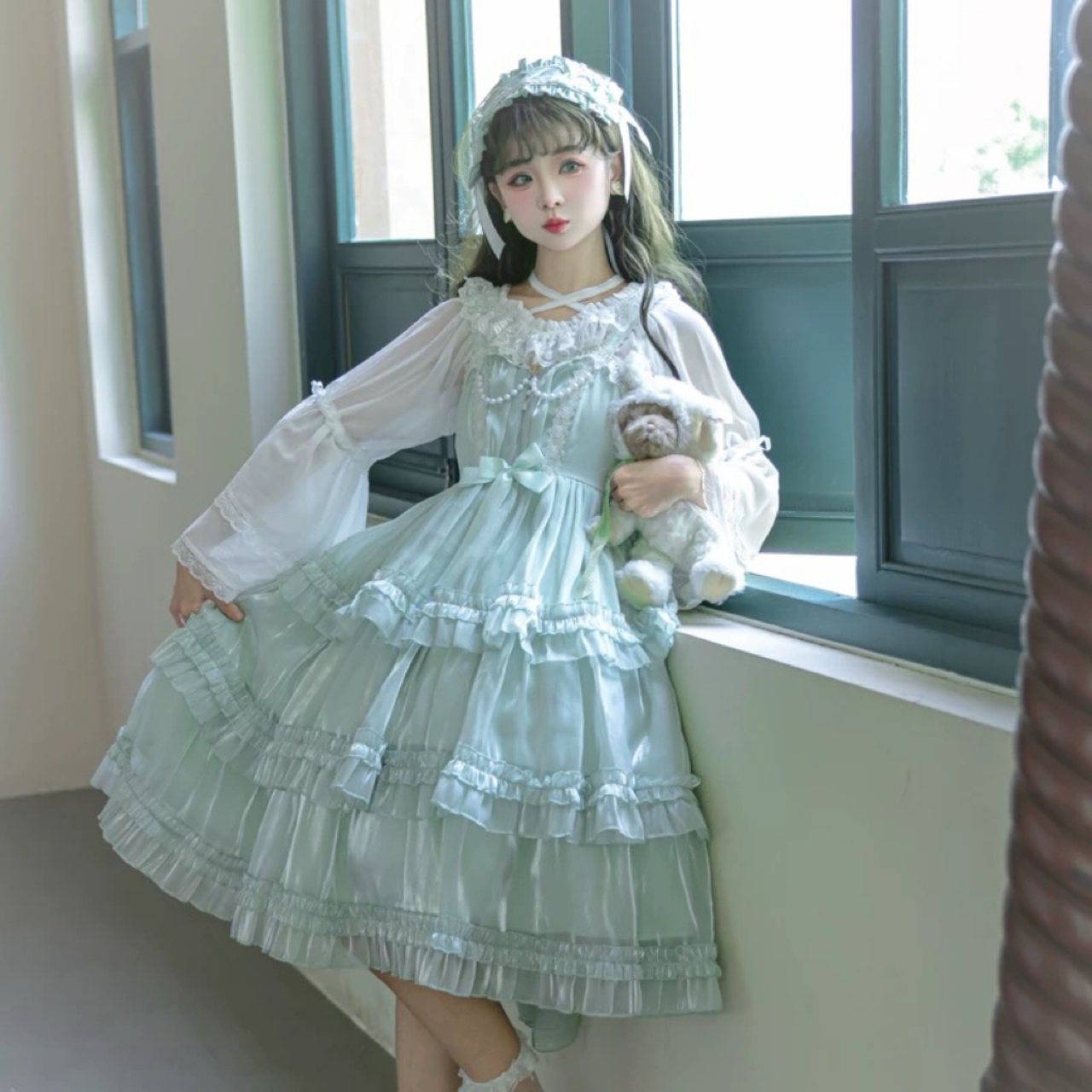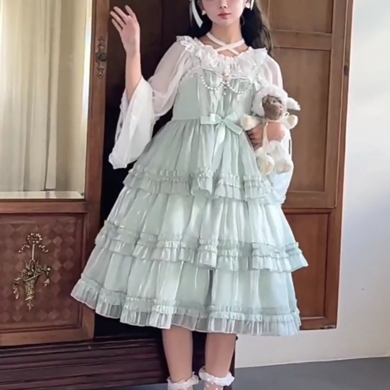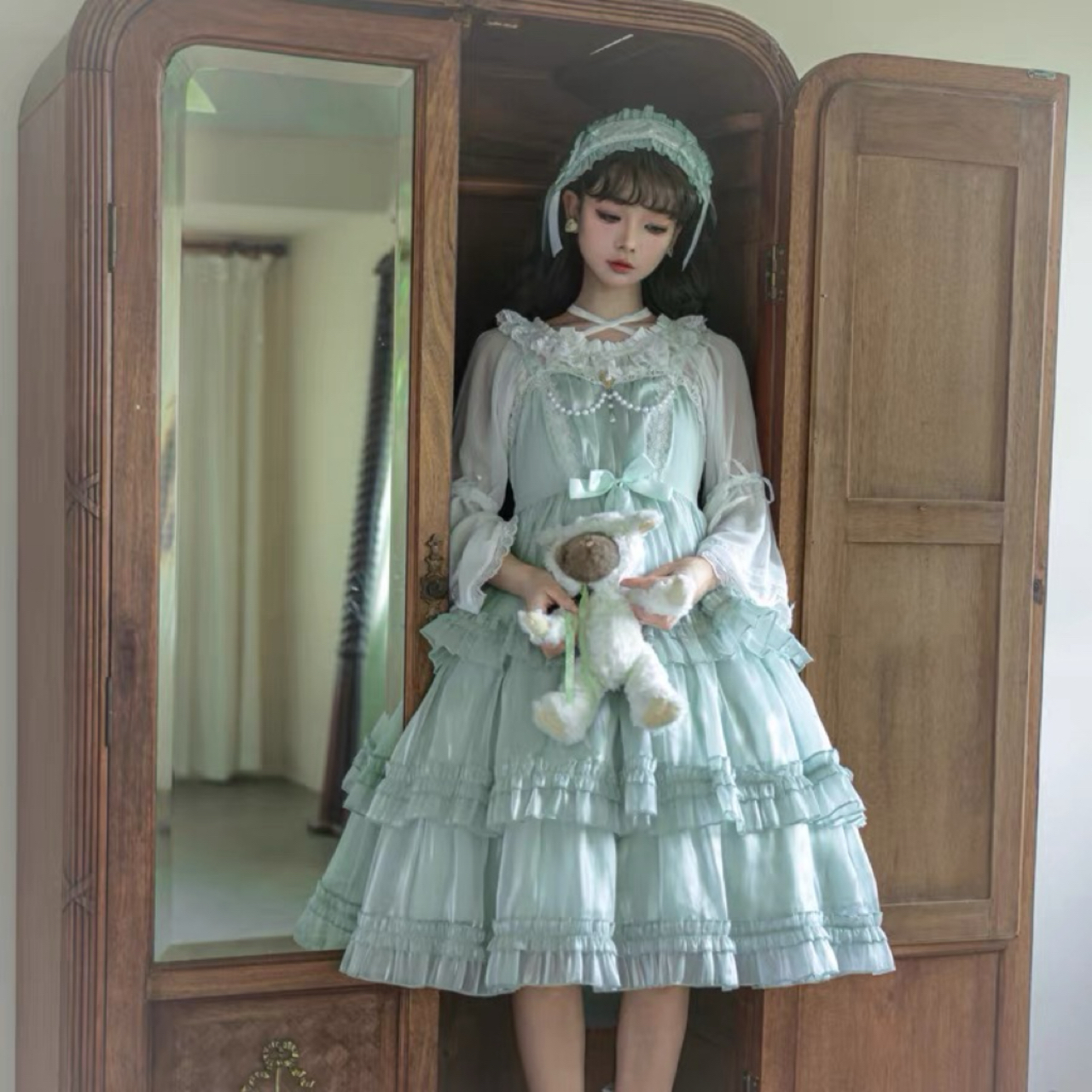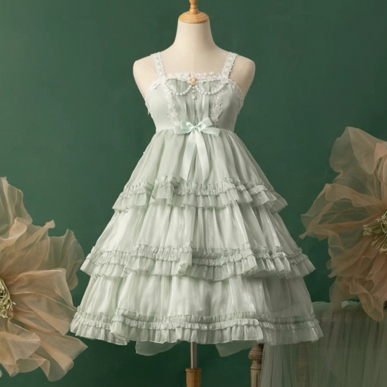 エメラルドフェアリーのクラシカルロリータドレスは、上品で幻想的な雰囲気を纏う特別な一着です。深みのあるエメラルドグリーンが優雅に映え、繊細なレースやリボンがクラシカルな魅力を引き立てます。ふんわりと広がるスカートはまるでおとぎ話のようで、日常を忘れるほどの可憐さ。お茶会や撮影会、特別な日のコーディネートにもぴったり。ロマンチックな世界観を愛するすべてのロリータさんにおすすめのドレスです。