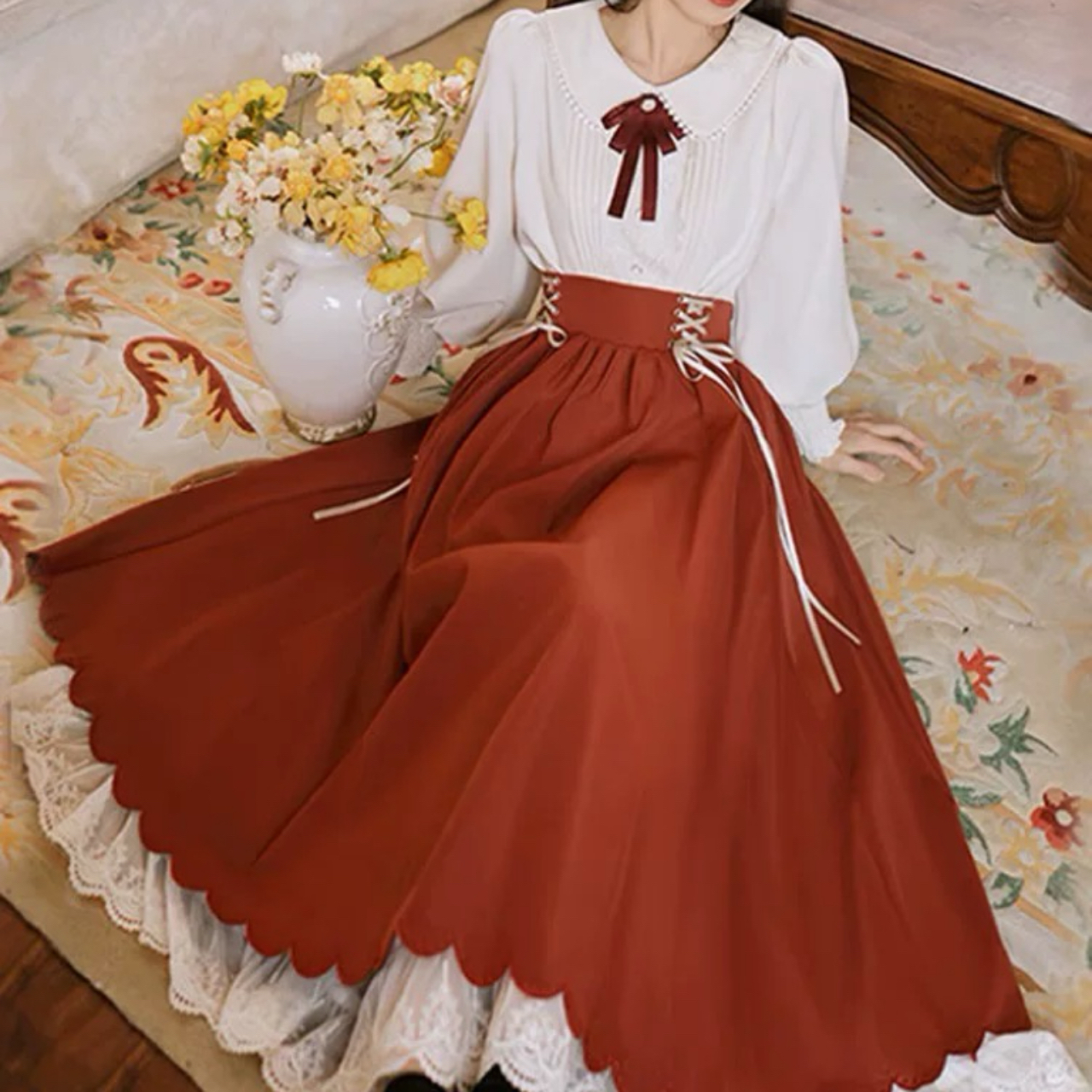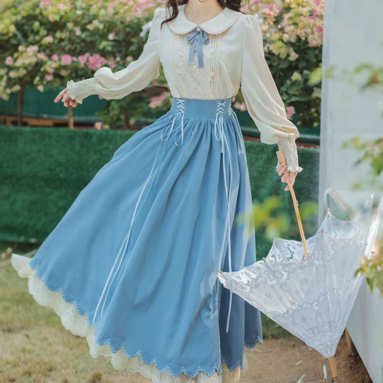 クラシカルロリータらしい優雅な雰囲気を纏う姫袖レース付きワンピース。ふんわりと広がる袖口に繊細なレースをあしらい、上品で華やかな印象を演出します。ウエストを美しく引き立てるシルエットで、クラシカルな気品と可憐さを両立。お茶会や撮影会、特別な日の装いにもぴったりな一着です。
