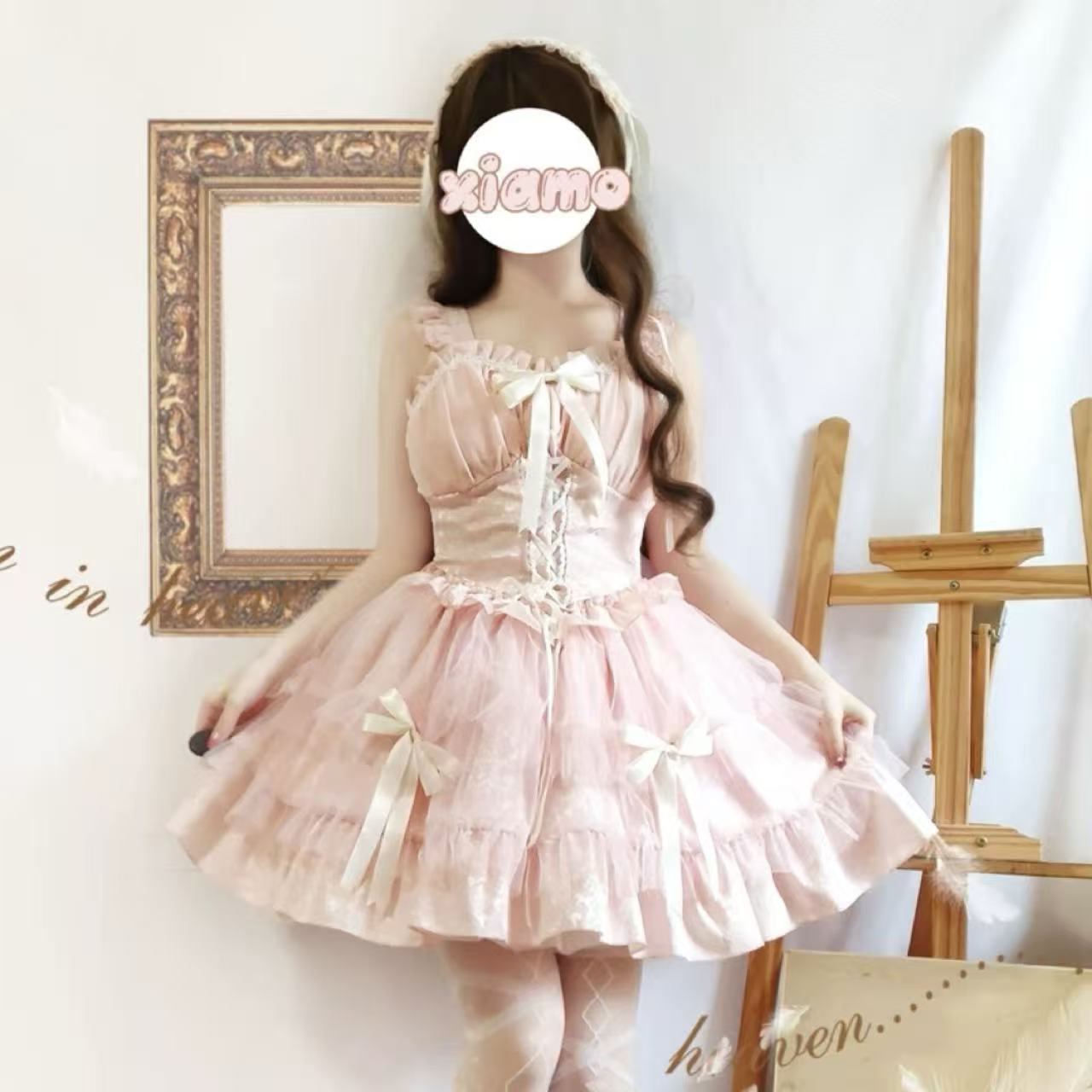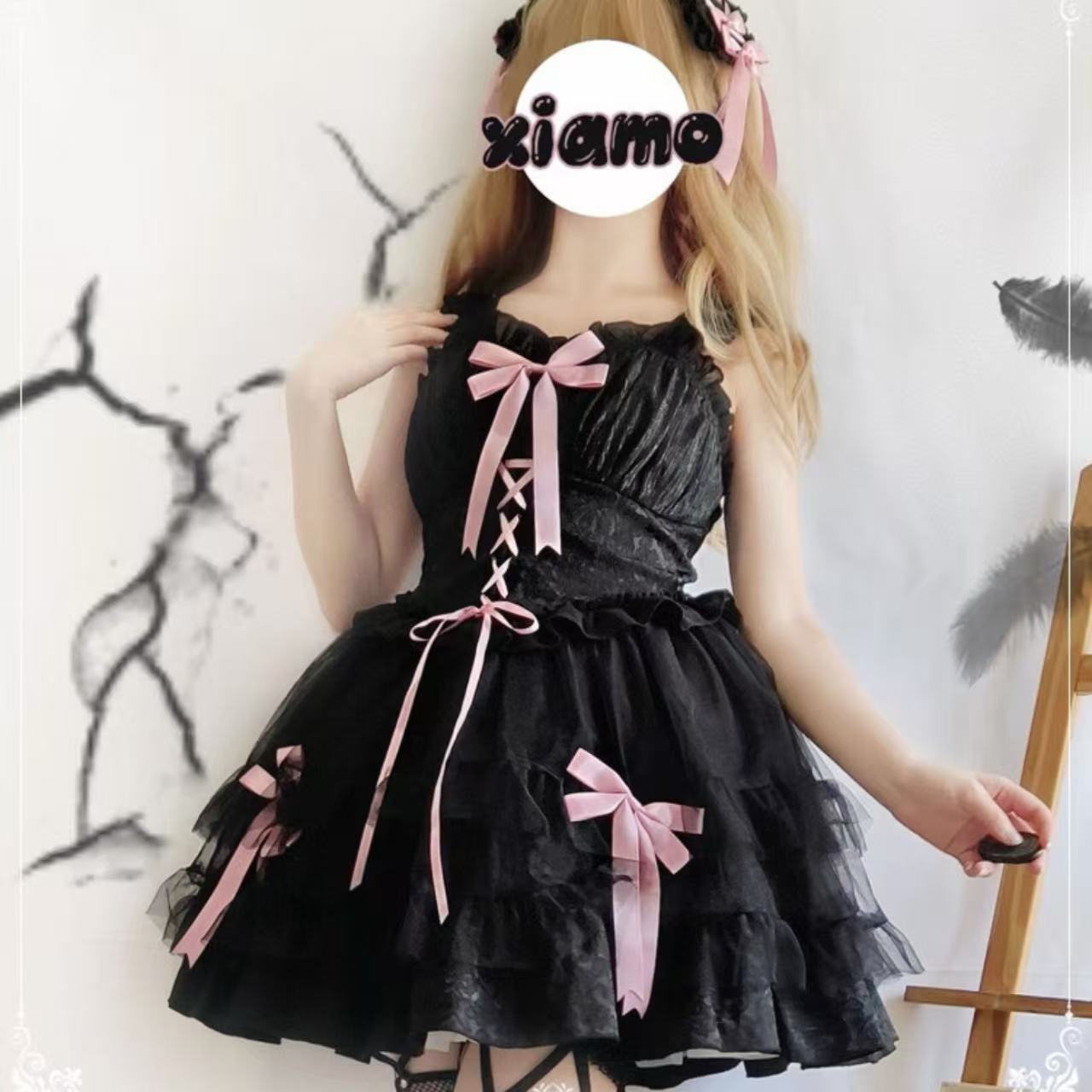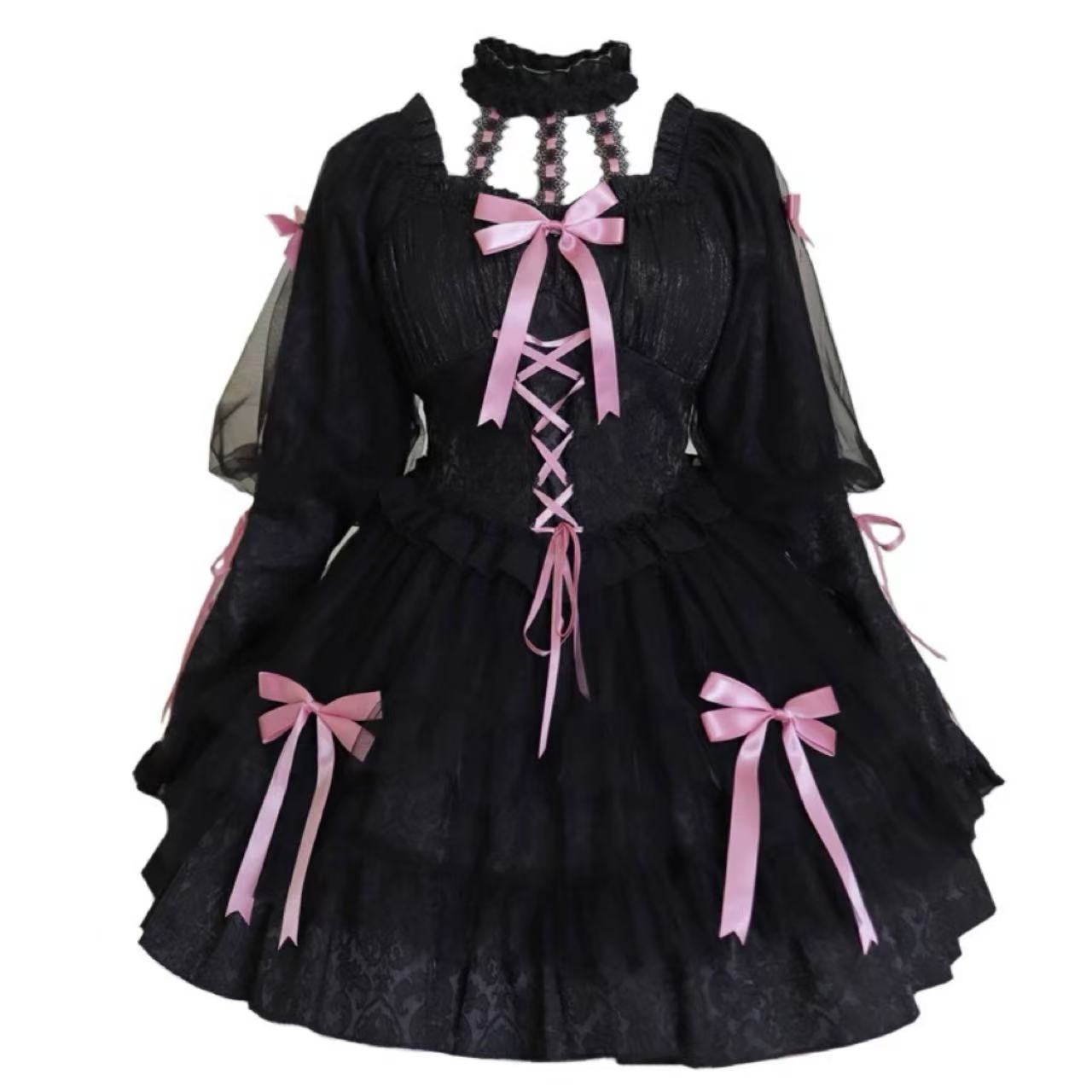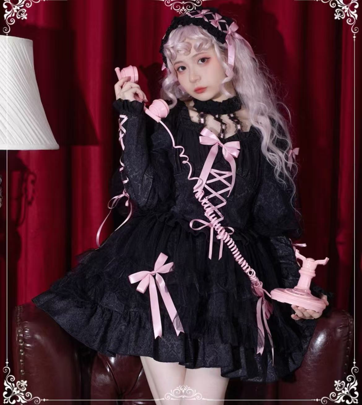 チョーカーから伸びた3本のレースが、まるでチェーンのように見えるユニークなデザインのゴスロリワンピースです。 存在感のある大きめヘッドドレスは、小顔効果も抜群。 ブラックはクールに、ピンクは可愛らしくと、カラーによって全く異なる印象を楽しめます。 どちらのカラーも揃えたくなる魅力的な一着です。