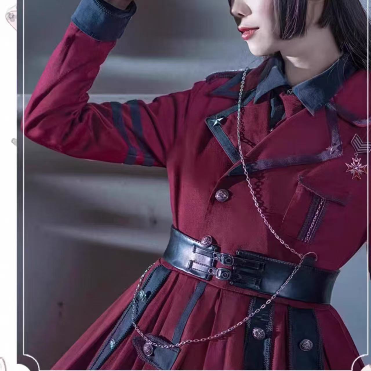 軍服ロリータ ブラックマントワインレッドフリルドレスワンピース