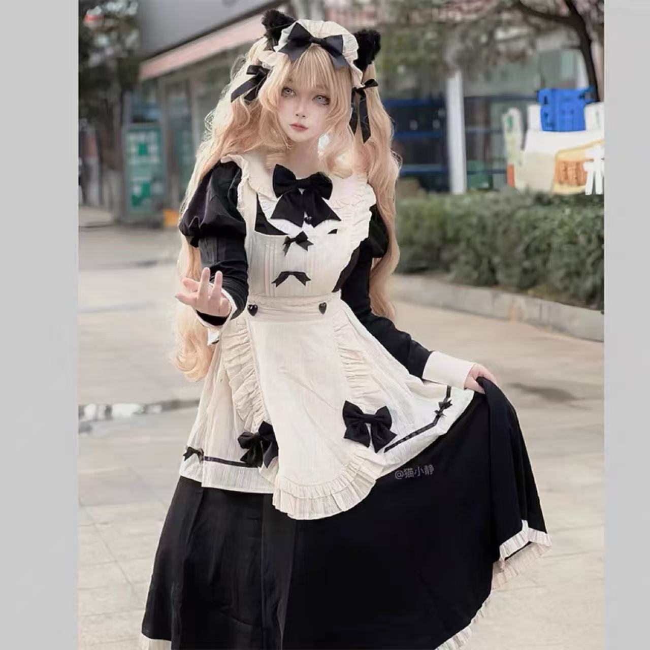 大きめサイズ対応のダークロリータワンピース。エレガントなパフスリーブとブラックカラーが落ち着いた雰囲気を演出し、メイド服風デザインで上品さをプラス。取り外し可能な袖とエプロン付きで、アレンジ次第で印象を変えられます。パーティーや撮影、特別なイベントにもぴったりで、ダークロリータスタイルを楽しみたい方におすすめの一着です。