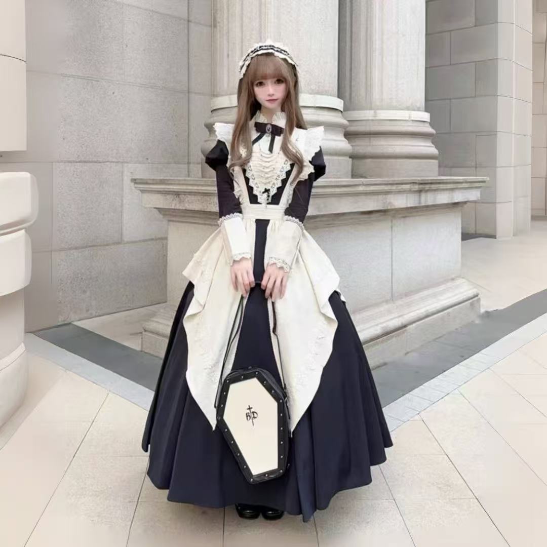 ゴスロリ エレガントパフスリーブメイド風ワンピース