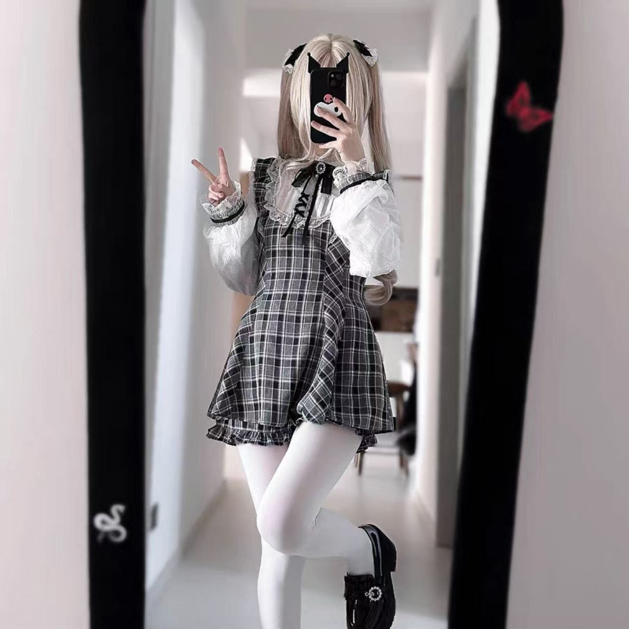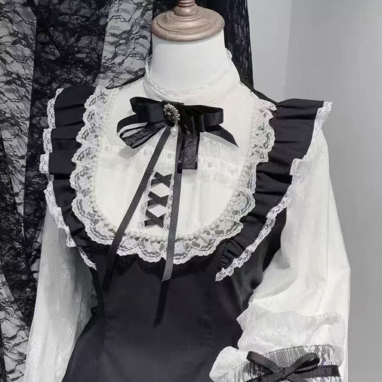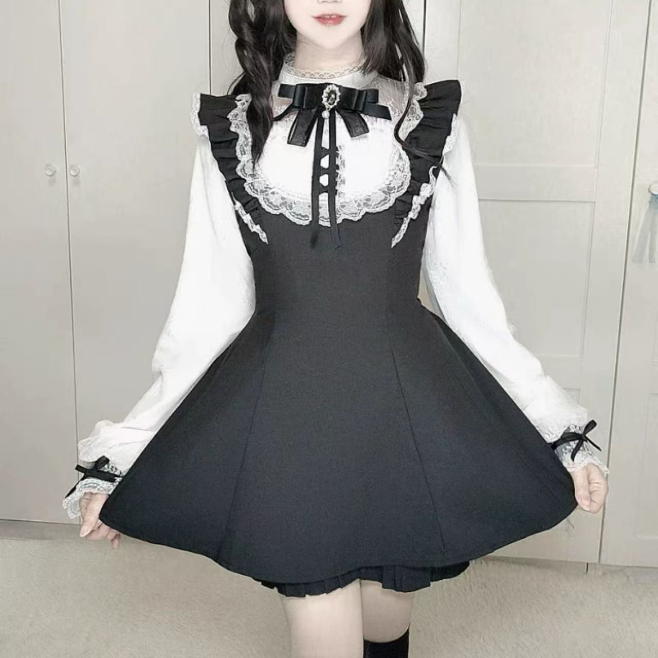 【初恋契約 仮想天国】ガーリーで夢可愛いレースワンピースセット。パールリボンとフリルが乙女心をくすぐるデザイン。ふんわりシルエットが上品で、特別な日のお出かけや撮影にもぴったりの一着です。