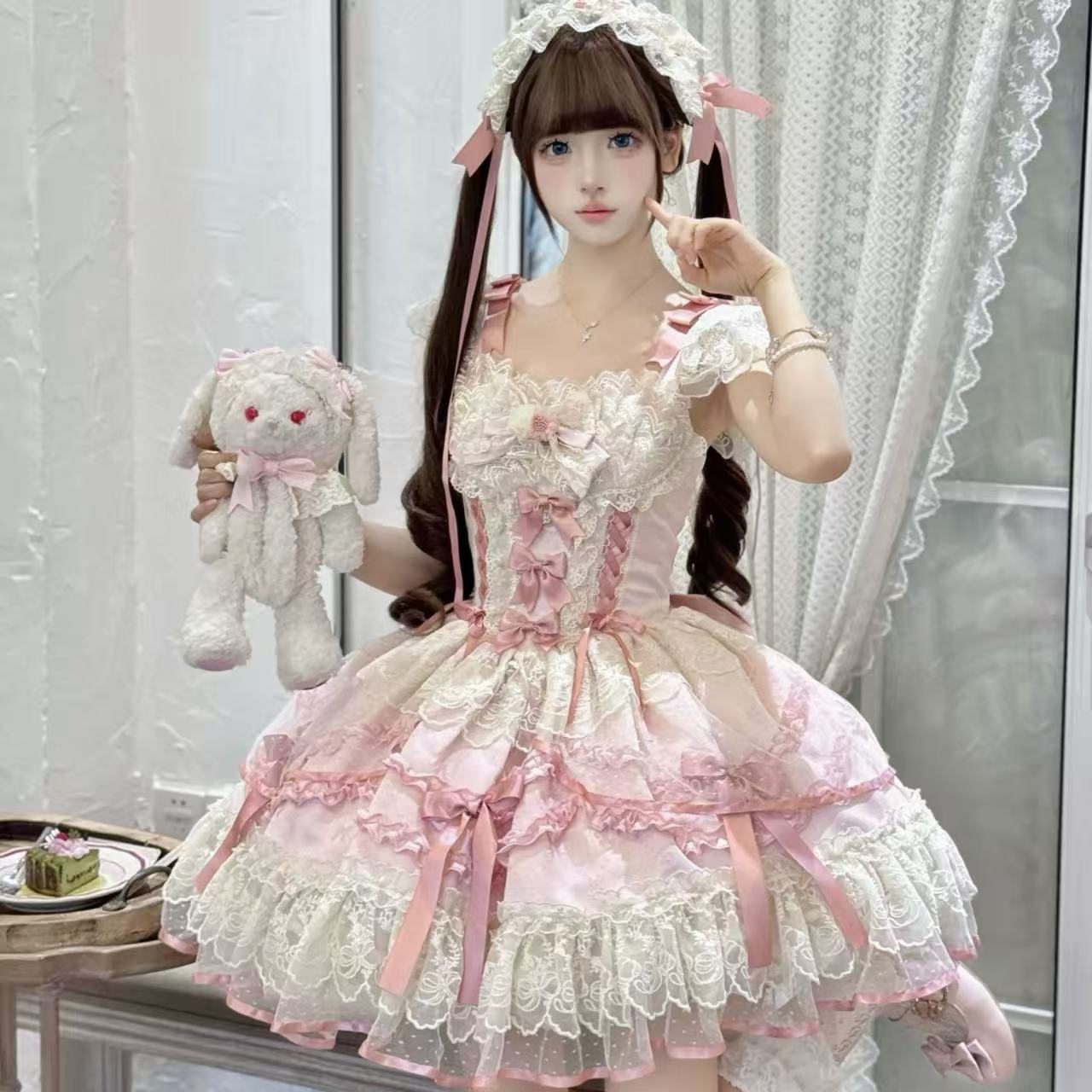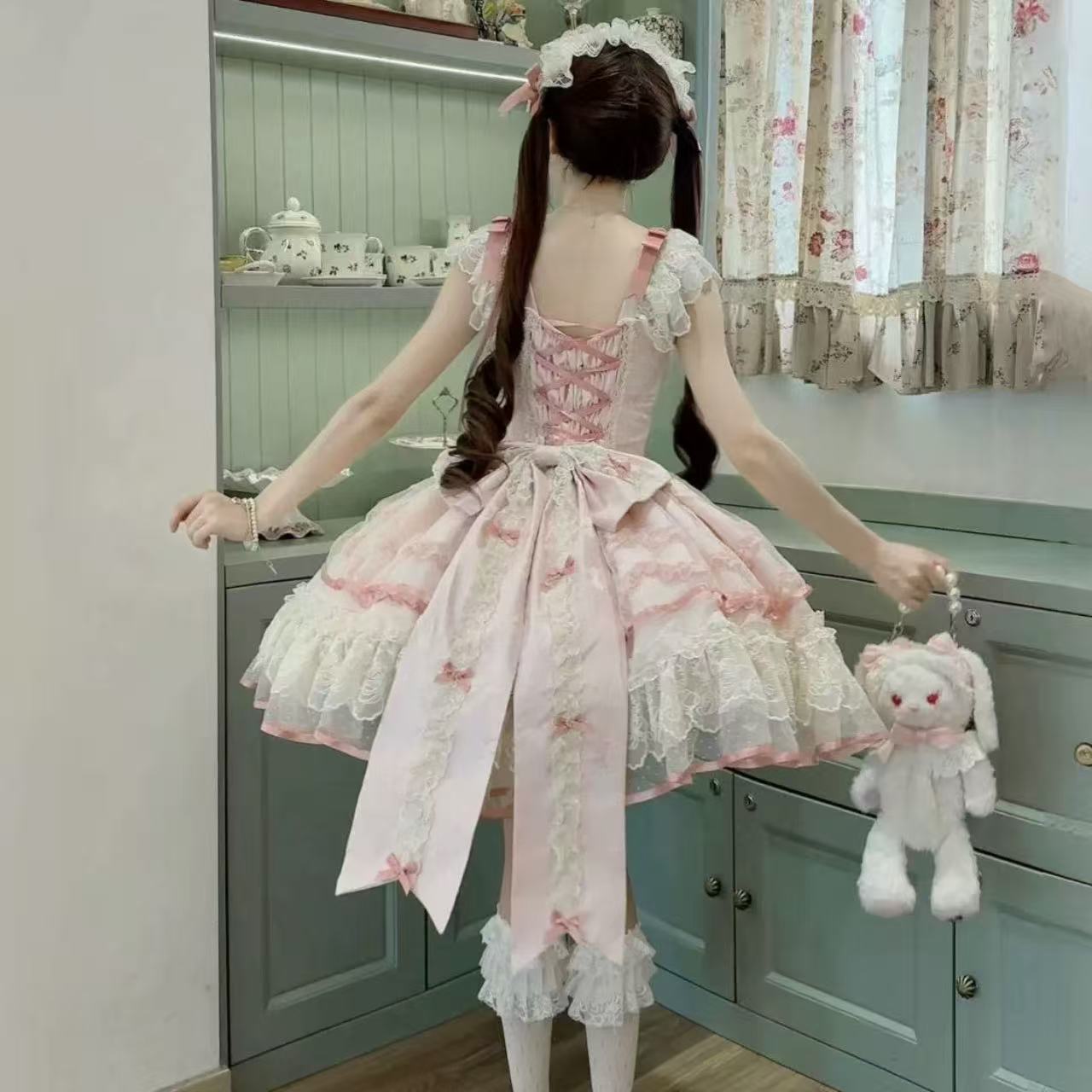 【ロリータ】Dream Butterflyシリーズのホワイトシュガーガールドレス。バレエスタイルの軽やかなJSKで、ふんわりと広がるチュールと繊細なレースが魅力。甘く上品なホワイトトーンが清楚な印象を与え、特別な日のコーデにもぴったりな新作ロリータサスペンダードレスです。