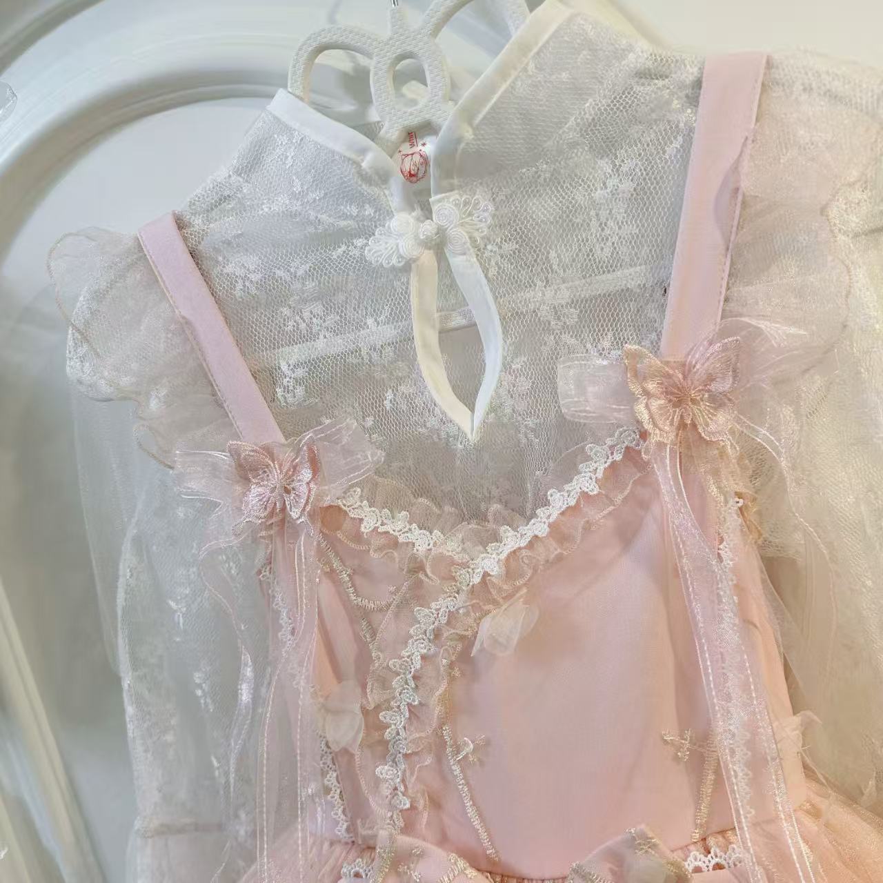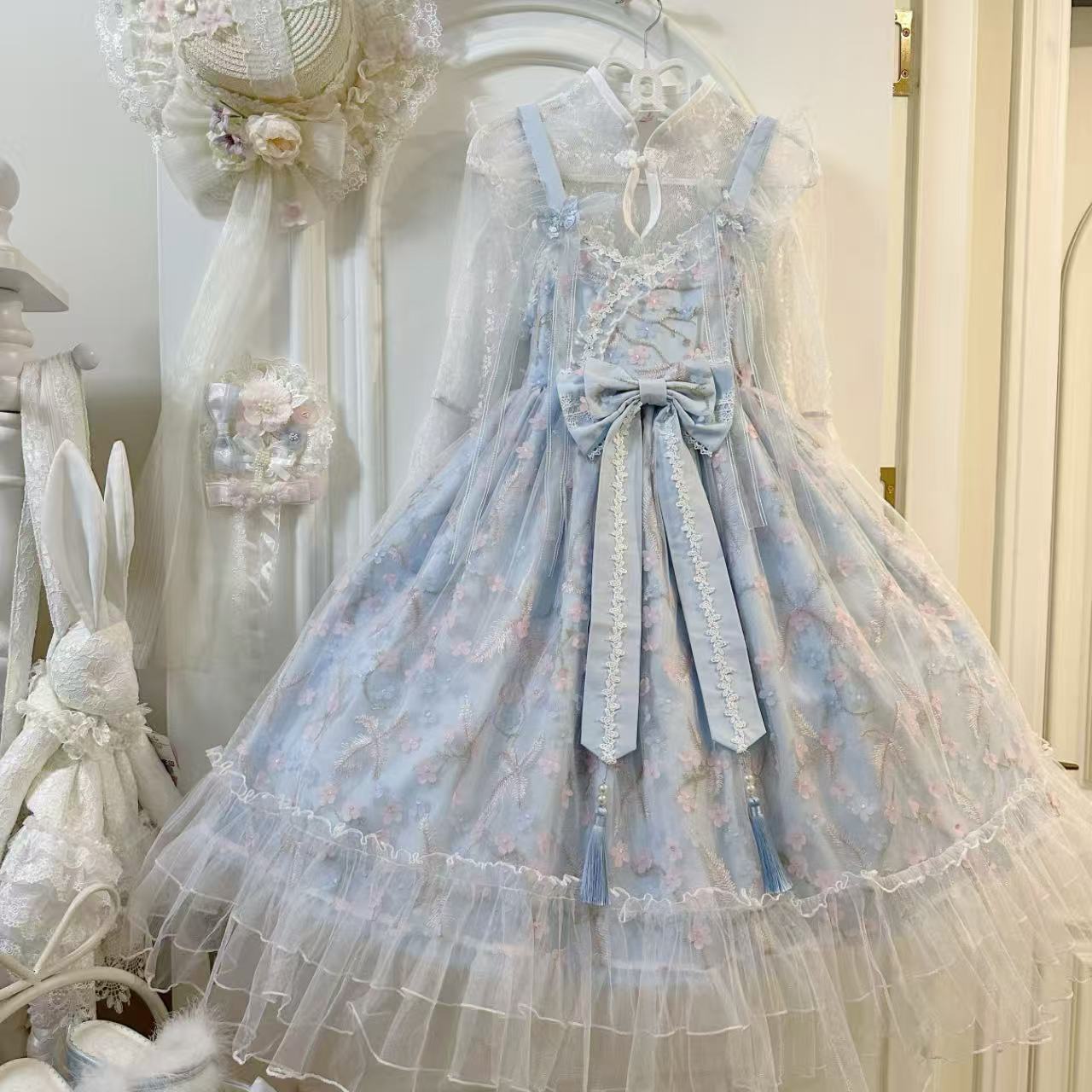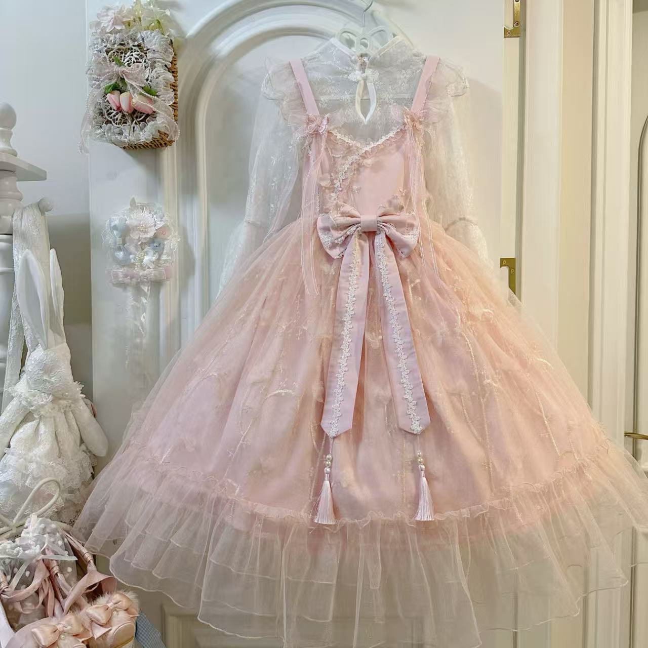 【ロリータ】シュガーガール3周年記念の特別再販モデル。チャイナスタイルを取り入れたオリジナルデザインのサスペンダーJSKワンピースです。春秋にぴったりの上品で可憐な雰囲気が魅力。特別な日のおしゃれを華やかに彩ります。