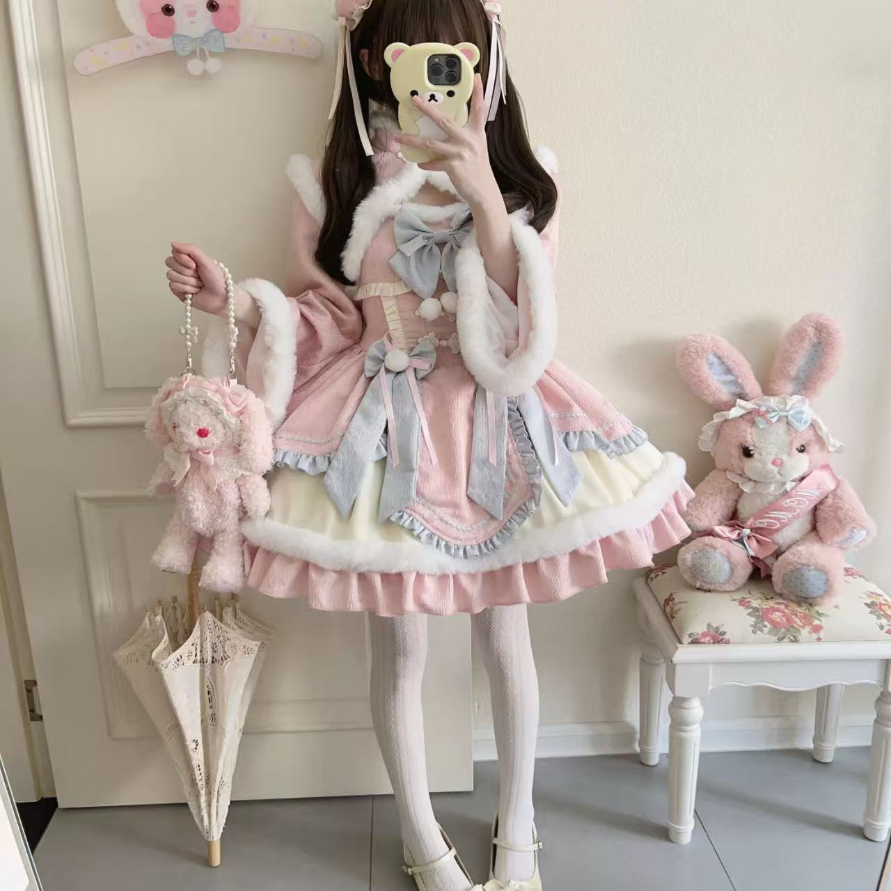 【ロリータドレス】ホワイトシュガーガール オリジナルデザイン 新年jskサスペンダードレス 冬