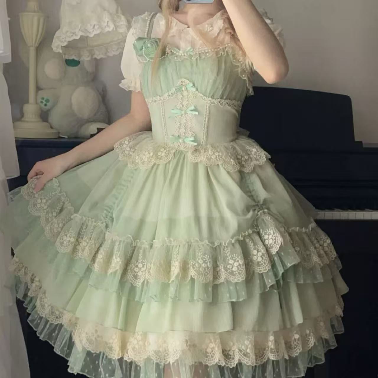 【ロリータワンピース】アニーティーパーティーは、ホワイトシュガーガールの新作オリジナルデザインJSKサスペンダーワンピース。おとぎ話のような世界観を感じさせる上品で甘いデザインが特徴です。柔らかな素材と繊細なレースが織りなすフェミニンな雰囲気で、ティーパーティーや撮影会にもぴったりの特別な一着です。