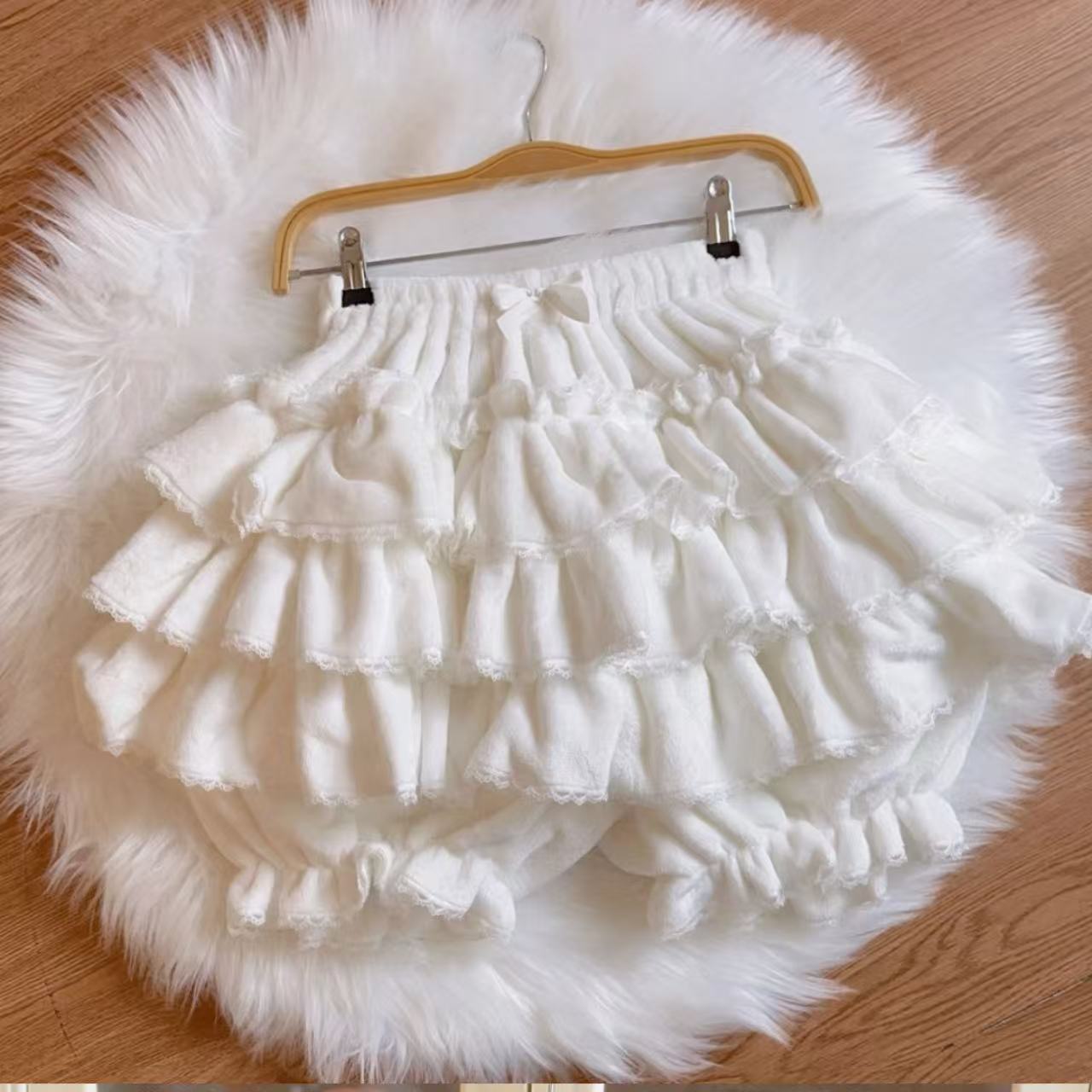 【ロリータ】ホワイトシュガーガールの在庫あり商品。日本のソフトガールにぴったりな、ふんわり暖かいパンプキンレギンス風ケーキスカートです。柔らかく伸縮性のある素材で履き心地抜群。秋冬のロリータコーデに万能に使える可愛いアイテムです。
