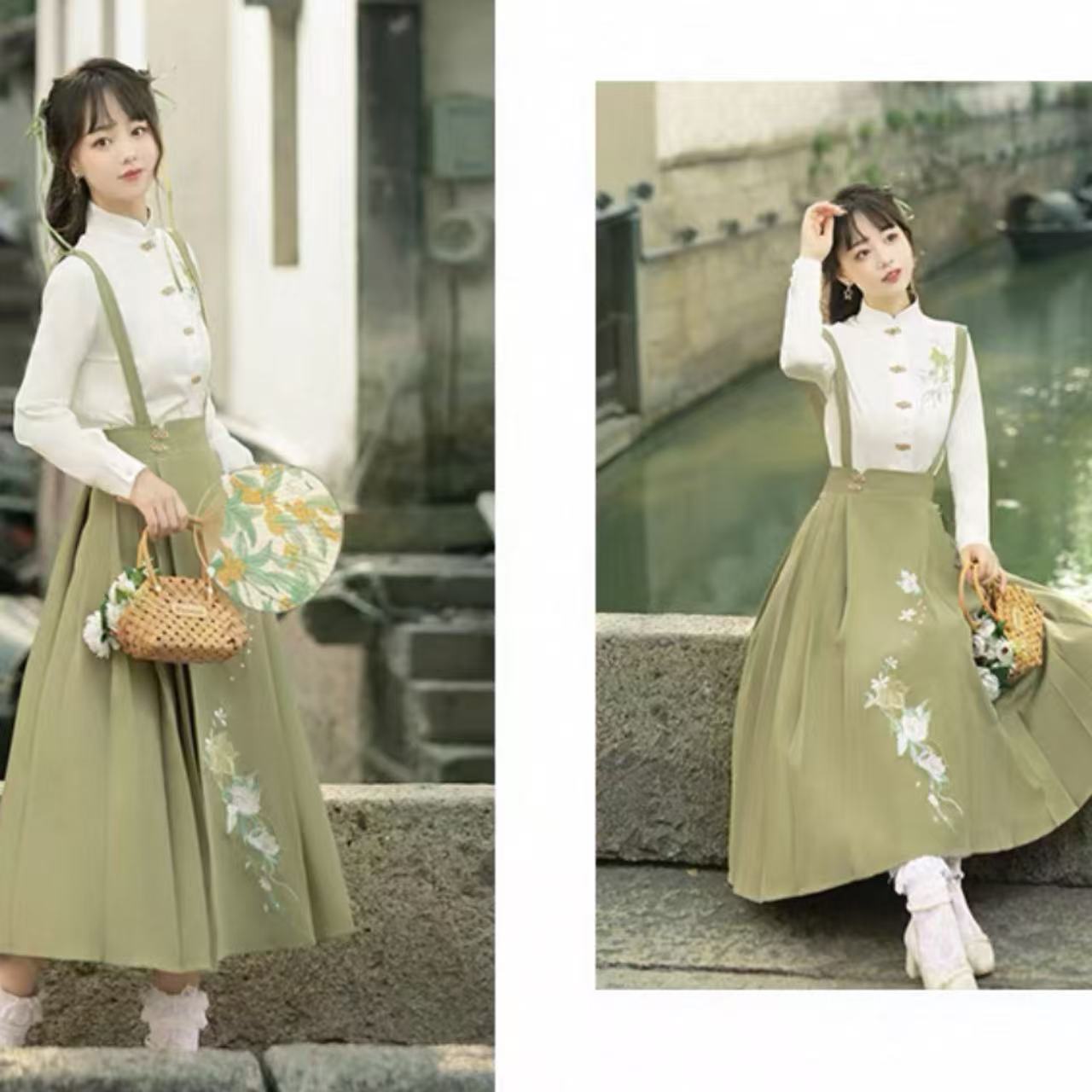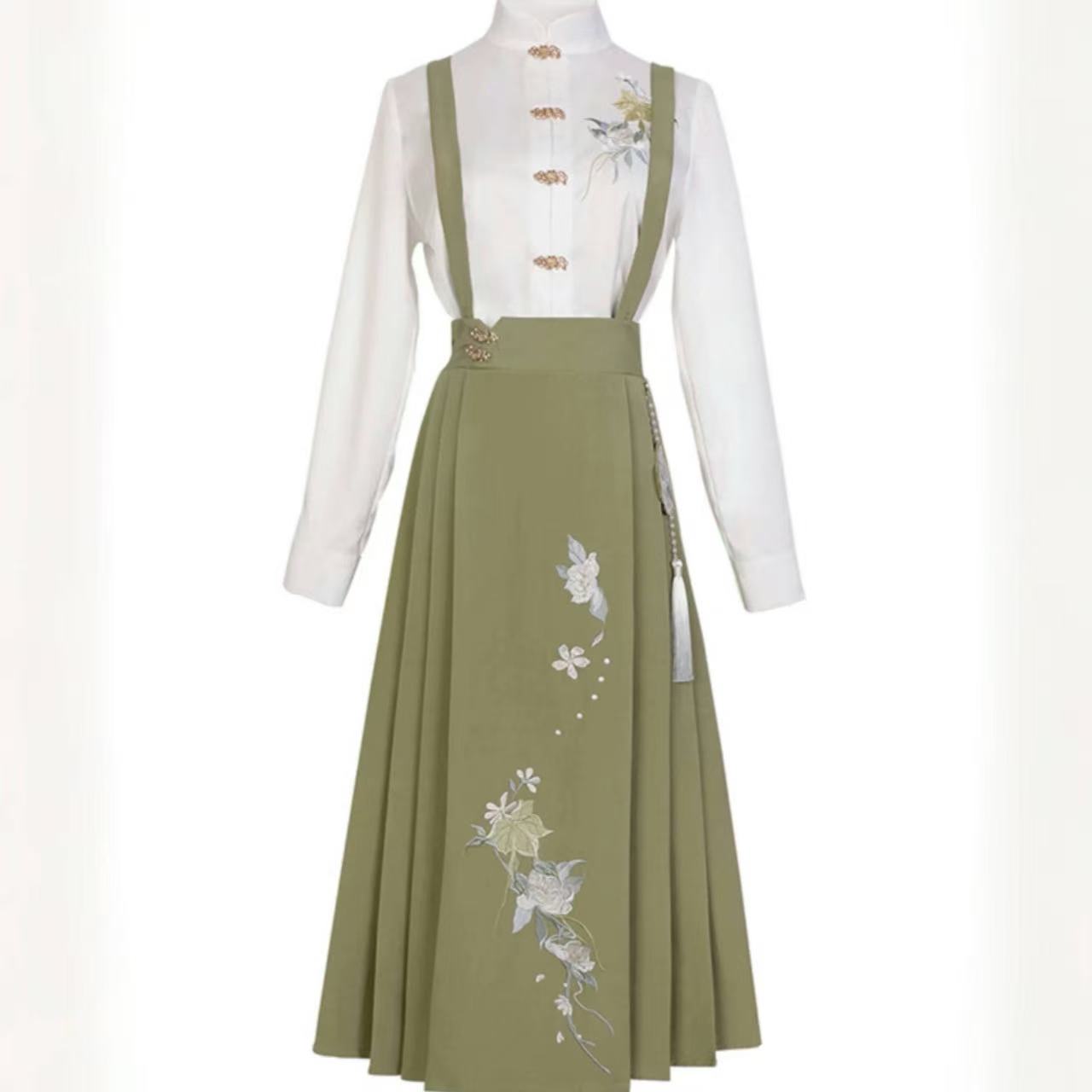 グリーンのナチュラルカラーが爽やかな印象を与える中華ロリータセットアップです。 伝統的なチャイナ要素とロリータらしいフリルやリボンを組み合わせたデザインで、上品さと可愛らしさを両立。 自然体で着こなせる落ち着いた雰囲気が魅力の一着です。