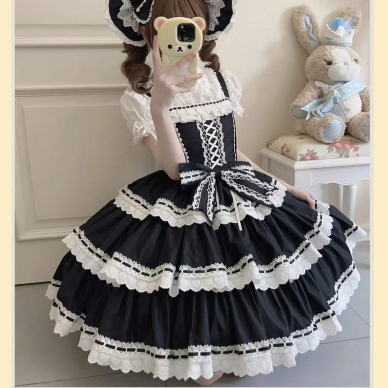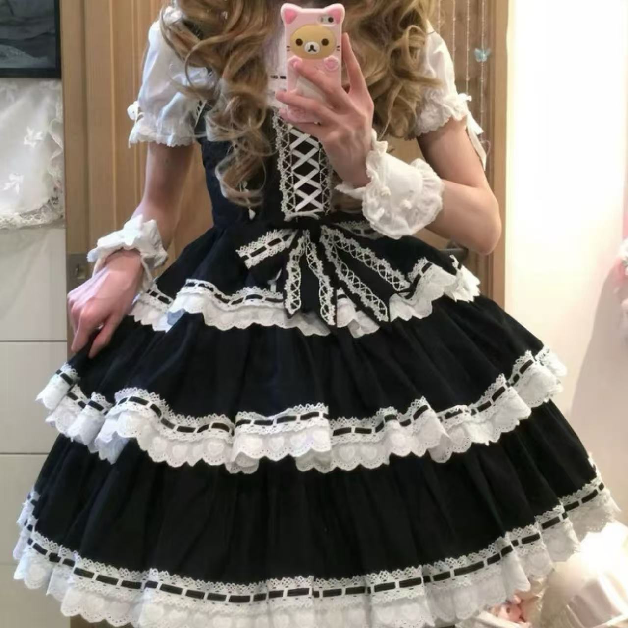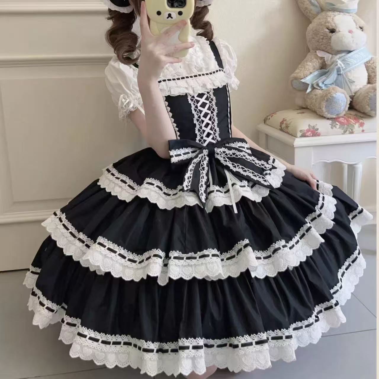 甘ロリータ ハートドール風3段レースサスペンダードレス