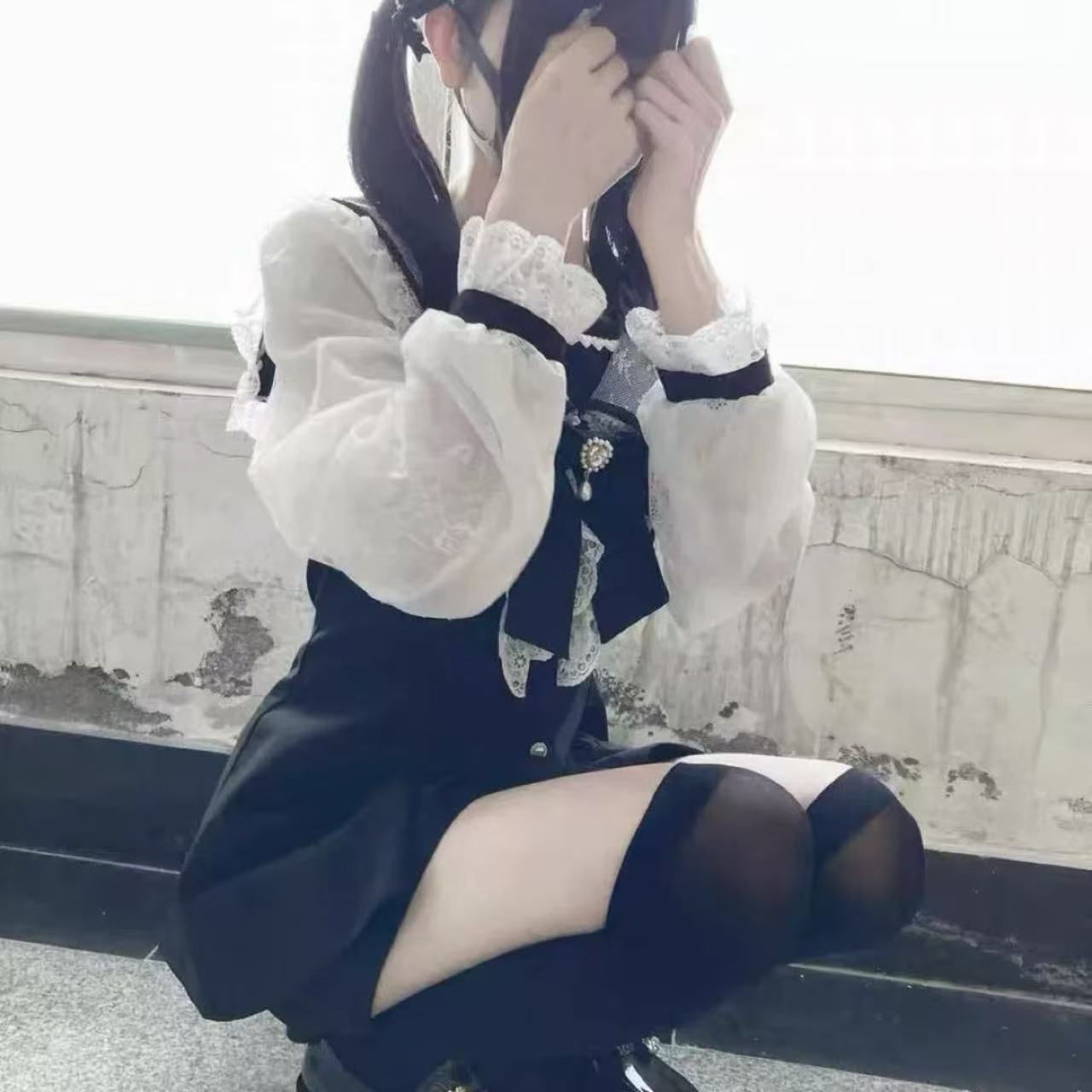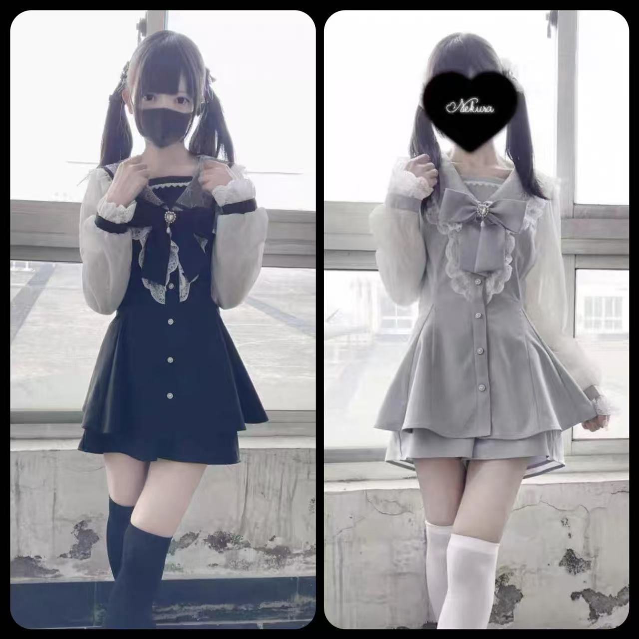 甘ロリータ ネイビーレースメッシュ・リボンドレスセット