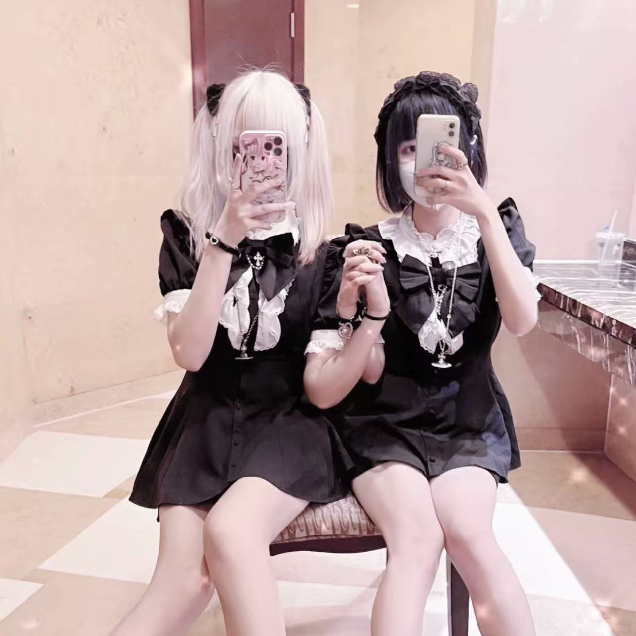 【セーラーカラー】可愛らしいセーラーカラーが魅力のレース×チェック柄セットアップ。リボン付きトップスとショートパンツの組み合わせで、甘さと爽やかさを両立。ガーリーな雰囲気を演出しつつ、カジュアルにも着こなせる万能コーデです。