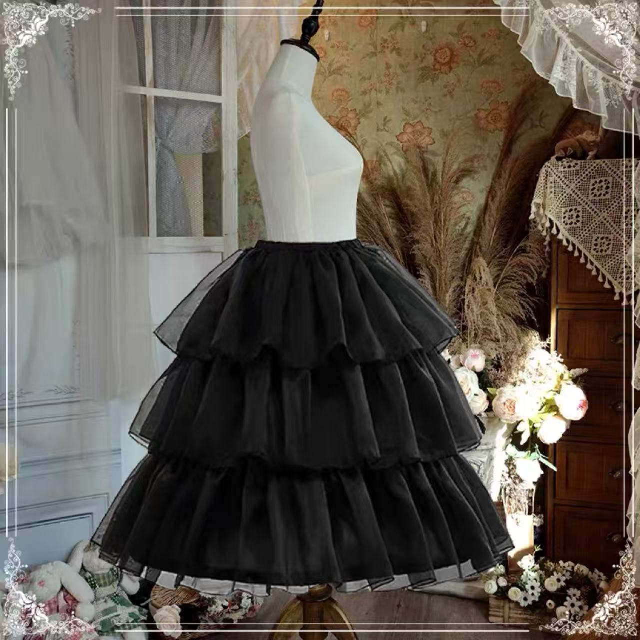 膝下丈のロリータコーデにぴったりなロングパニエです。ハードチュール素材を使用しており、ワイヤーのような不自然な型が出ず、ふんわりと美しいシルエットをキープします。70cmの長め丈で、スカートをしっかりと下から支えてくれる優秀アイテム。折り返し縫製でチュールの端も見えず、上品な仕上がりです。ボリューム感をプラスしたい方におすすめです。