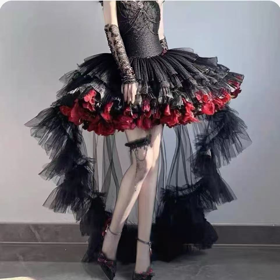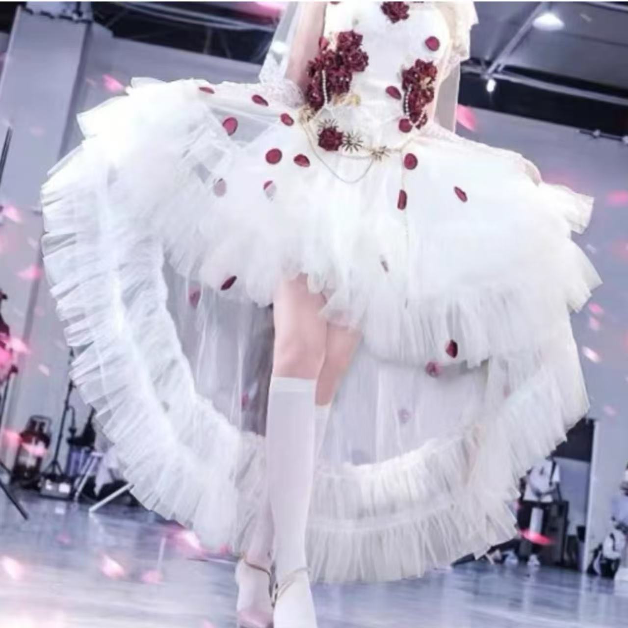 【ロリータ】バレエスタイルの優雅なガーゼスカートワンピース。軽やかなグラステクスチャ素材と、透け感のあるスイングメッシュエプロンが幻想的な印象を与えます。ミドル丈のトレーンが動くたびにふわりと揺れ、バレリーナのような上品さと可憐さを演出。エレガントでフェミニンな雰囲気を纏いたい方にぴったりの一着です。