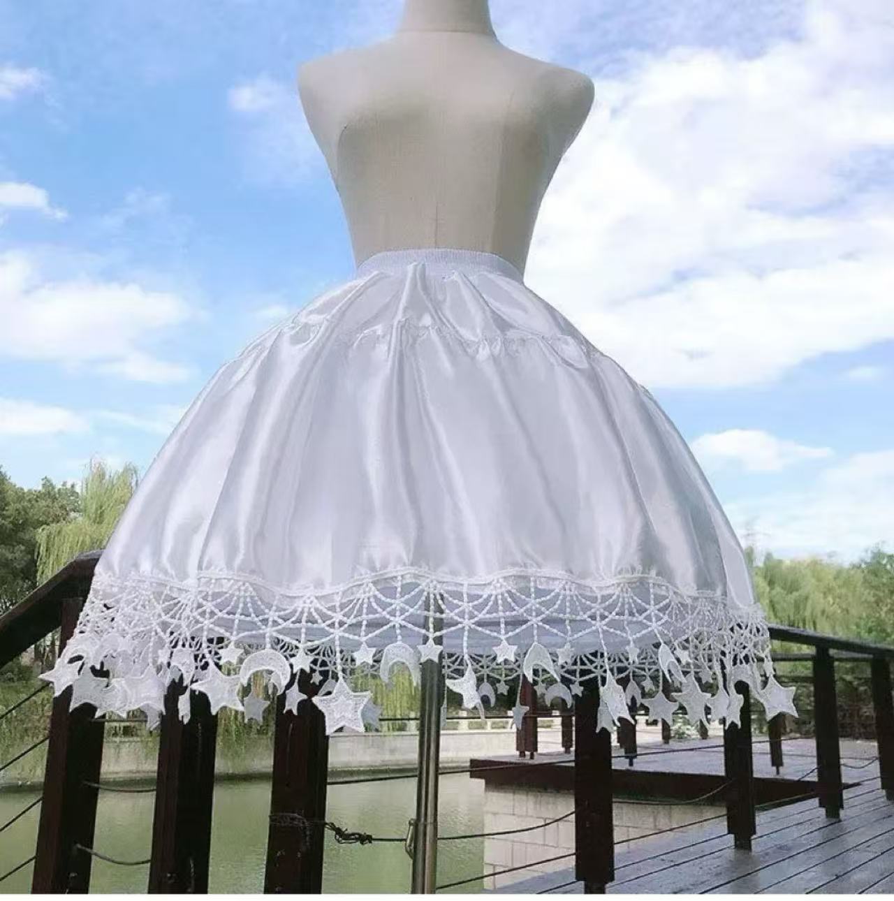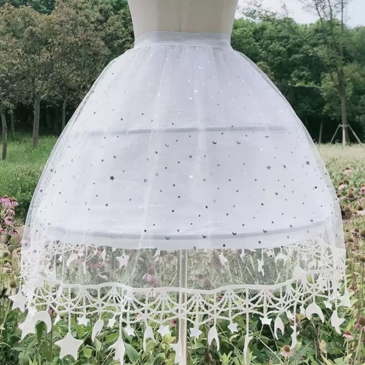 【ロリータ】調節可能なフィッシュボーンサポート付きのペチコート。ミドル丈でふんわりとしたボリュームを演出し、ロリータドレスやパフィースカートに最適です。形をしっかり保ちながら軽やかな着心地を実現。華やかで上品なシルエットを作る必須アイテムです。
