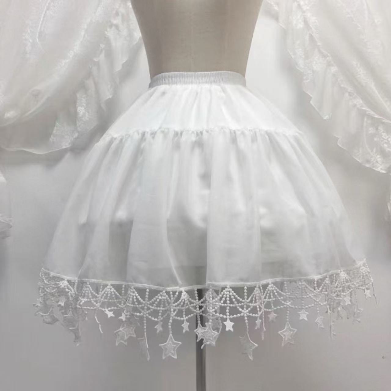 ホワイトシュガーガールのロリータ多目的フィッシュボーンサポートスカートです。ウエストのフィッシュボーン構造でふんわり広がるシルエットをキープ。ドレスやJSKの下に重ねて、より華やかなロリータスタイルを演出できます。