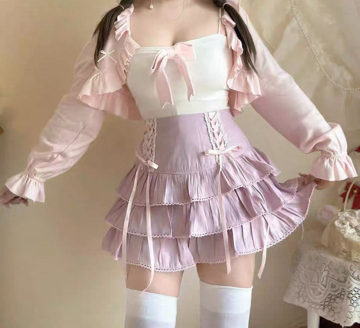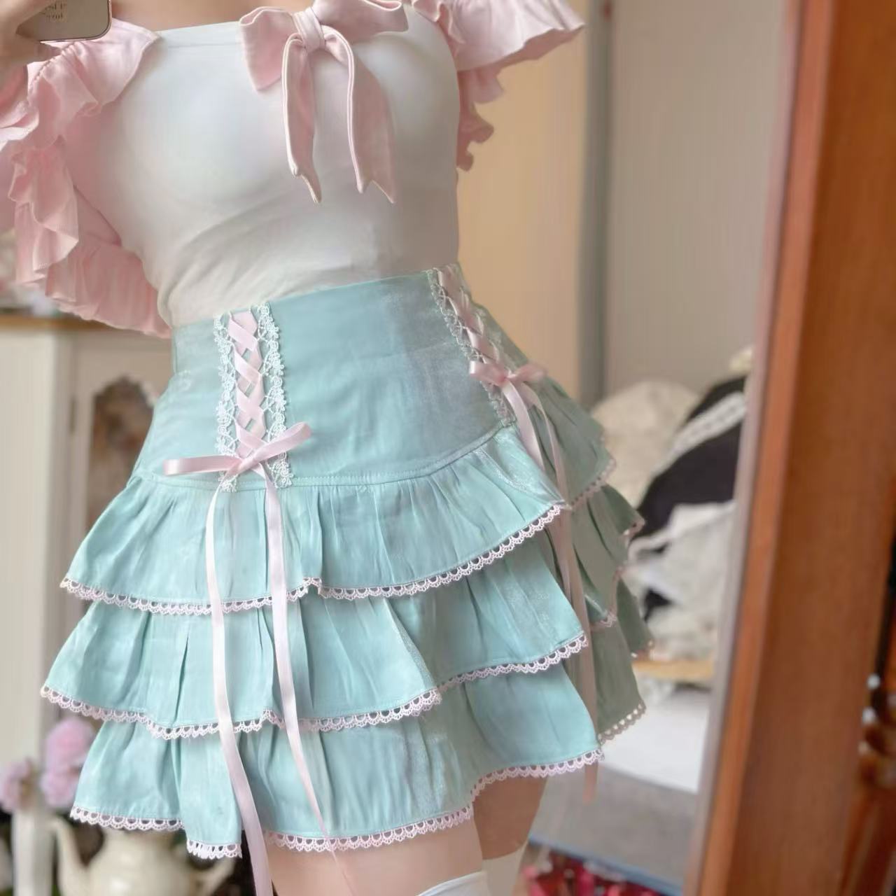 甘ロリータ ハイウエスト伸縮性ショートスカート