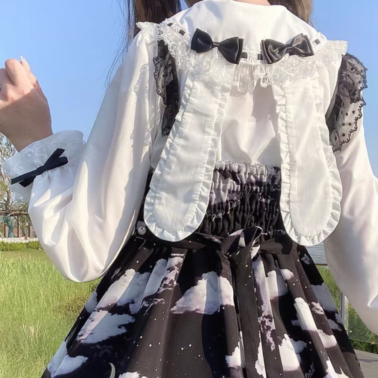 【ロリータ】ホワイトシュガーガールのオリジナルデザイン。うさぎ耳付きの長袖トップスは、甘くてガーリーな雰囲気たっぷりの秋の新作です。ふんわりした袖と柔らかな素材が可愛らしさと着心地を両立。ロリータコーデやデイリーにもぴったりで、スカートやJSKとの相性も抜群です。